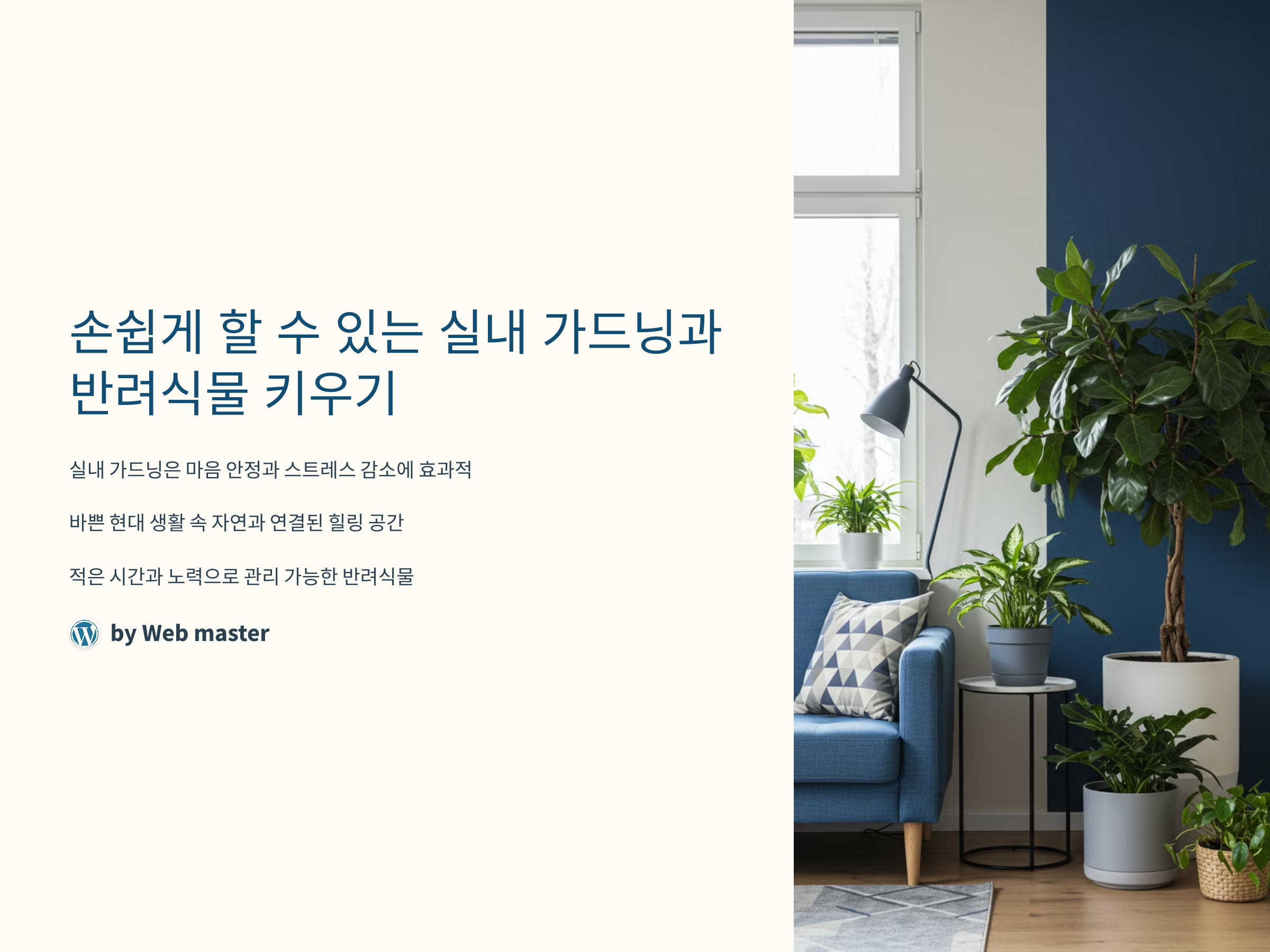 식물을 키우는 것은 단순히 장식용이 아니라, 삶에 활력을 주는 중요한 활동입니다. 실내 가드닝을 통해 자신만의 작은 정원을 만들고, 식물들과의 교감을 통해 자연을 가까이에서 느낄 수 있습니다. 자, 그럼 어떻게 하면 손쉽게 실내에서 반려식물을 잘 키울 수 있을지 함께 알아보겠습니다.