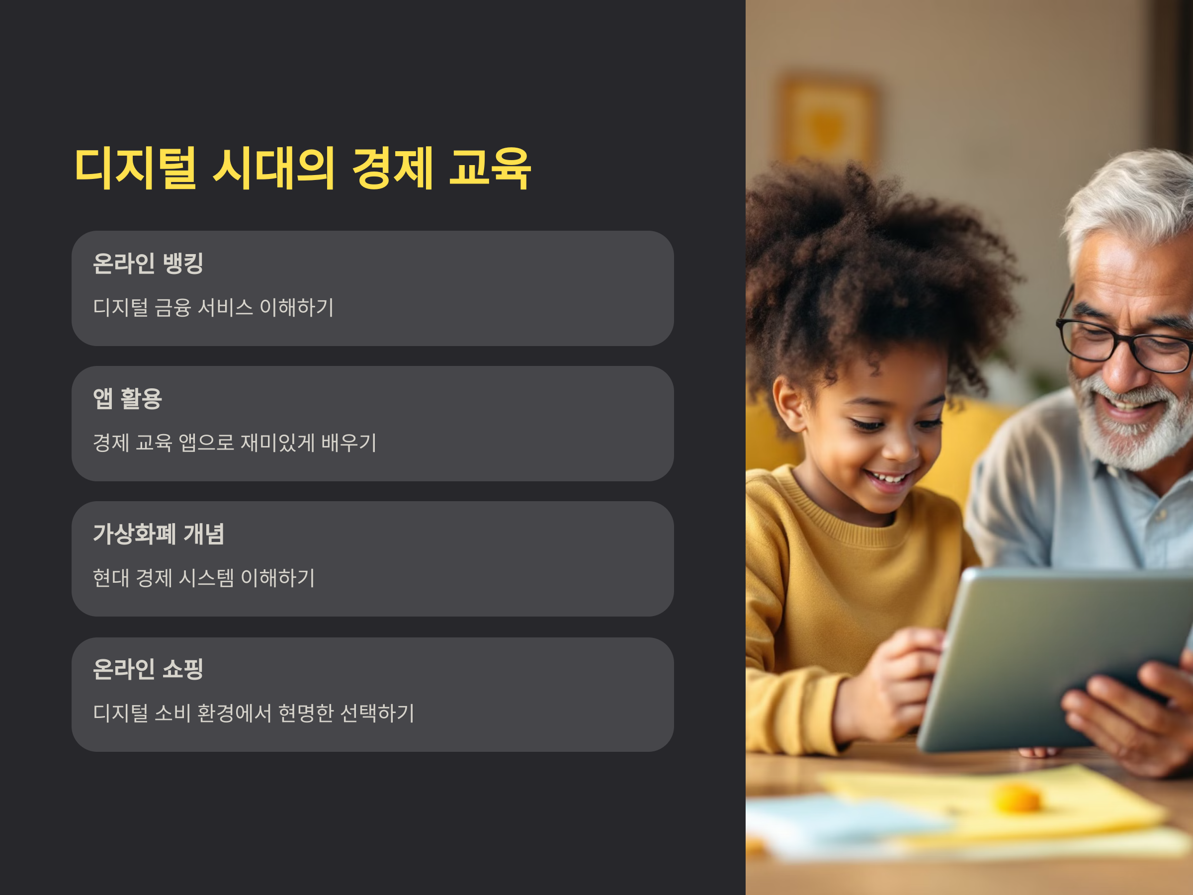 아이들은 현재 가상화폐와 디지털 금융에 대한 관심도 많습니다. 이를 이용해 경제 교육을 보다 현대적이고 재미있게 만들 수 있습니다. 디지털 지갑이나 가상 화폐를 이용한 거래 방식에 대해 이야기하면서, 실제 돈이 어떻게 움직이고 관리되는지 설명할 수 있습니다.