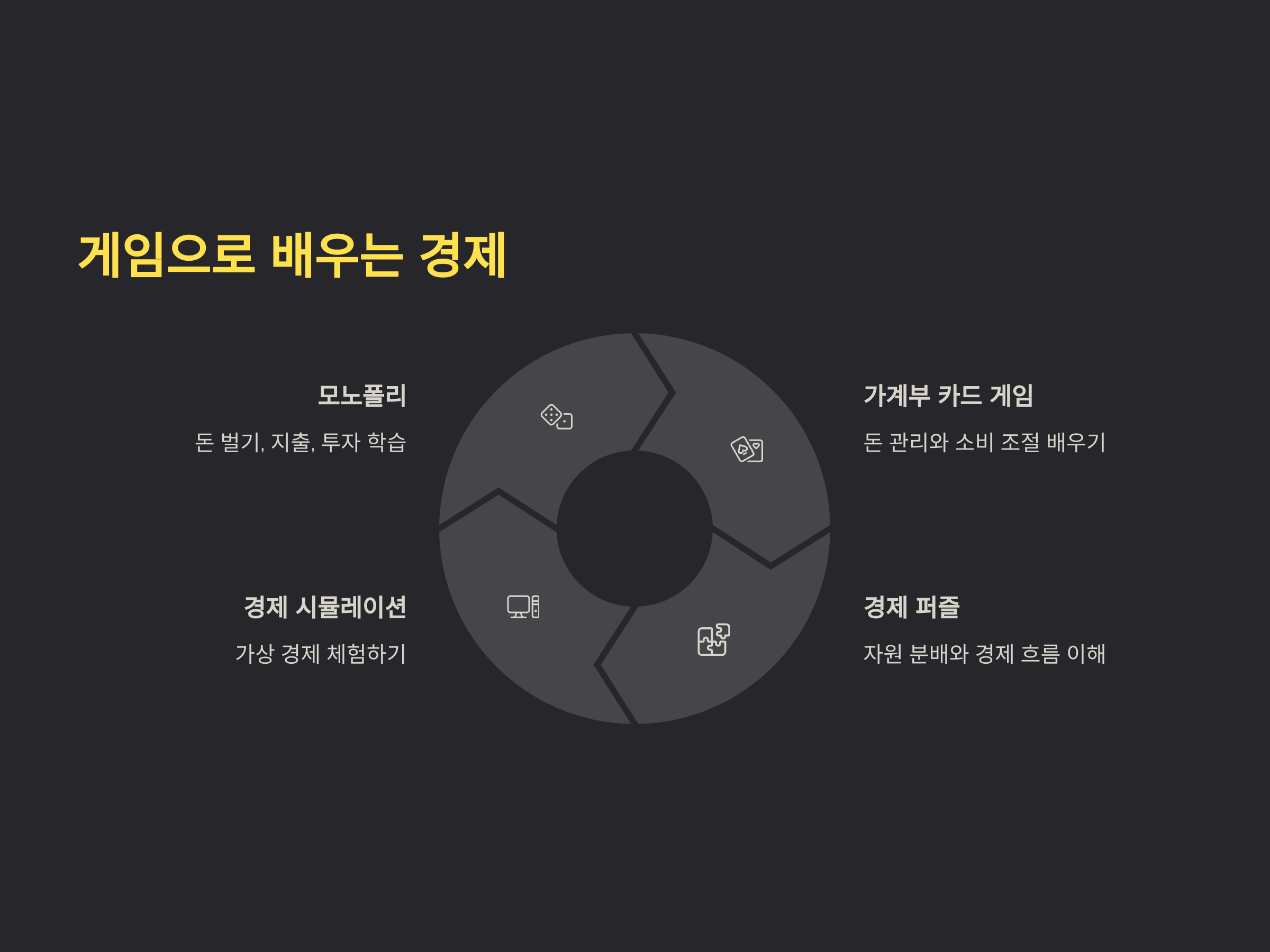 아이들은 게임을 통해 배우는 것을 좋아합니다. 이를 활용하여 경제 교육을 더 재미있고 유익하게 만들 수 있습니다. 예를 들어, 보드 게임이나 카드 게임을 활용해 경제 개념을 쉽게 이해시킬 수 있습니다. 게임을 통해 돈의 흐름, 자산 관리, 그리고 자원의 분배를 배울 수 있습니다.