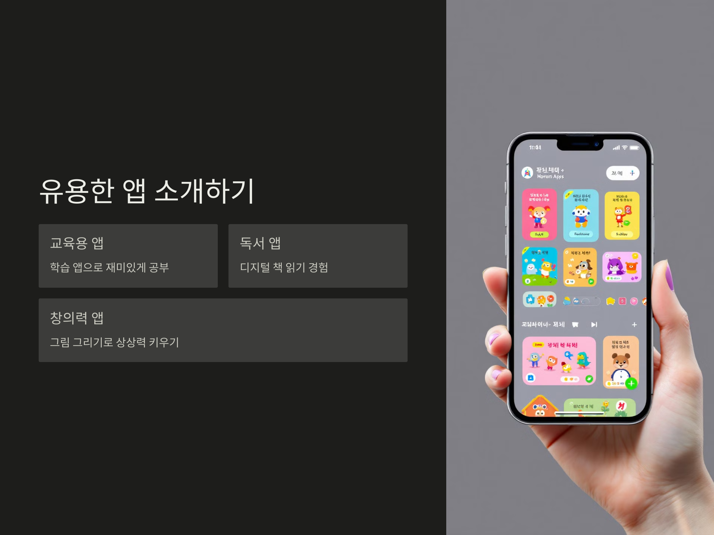 스마트폰에서 사용할 수 있는 앱은 무수히 많습니다. 그러나 손자녀에게 사용할 앱을 선택할 때는 유용하고 교육적인 앱을 중심으로 소개하는 것이 좋습니다. 예를 들어, 손자녀가 좋아하는 학습 앱, 책 읽기 앱, 그리고 창의력을 키울 수 있는 그림 그리기 앱 등을 추천해 보세요.