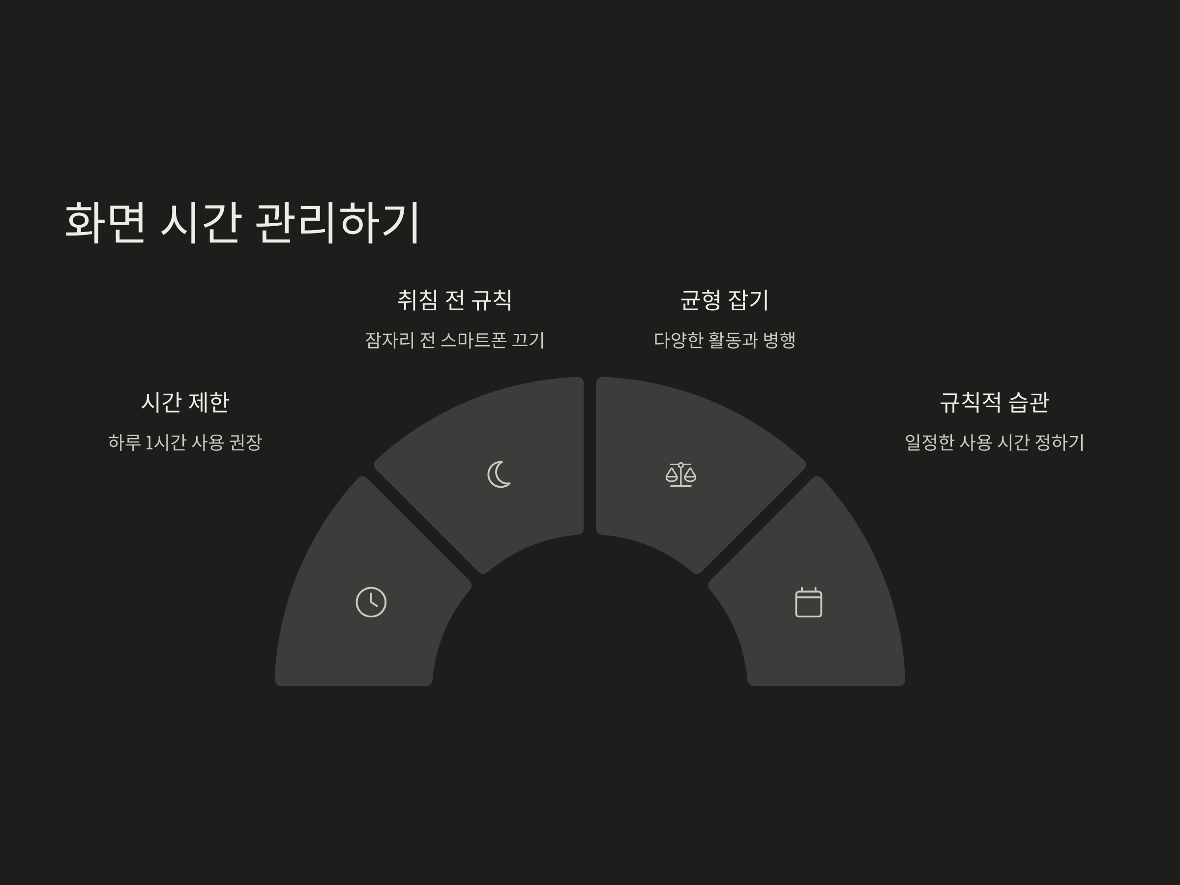 스마트폰 사용 시간을 관리하는 것도 매우 중요합니다. 손자녀가 스마트폰을 너무 많이 사용하면 건강에 해로울 수 있기 때문에, 사용 시간을 일정하게 제한하는 것이 좋습니다. 예를 들어, 하루에 스마트폰 사용 시간을 1시간으로 제한하고, 그 시간을 유용한 활동에 활용하도록 유도할 수 있습니다.