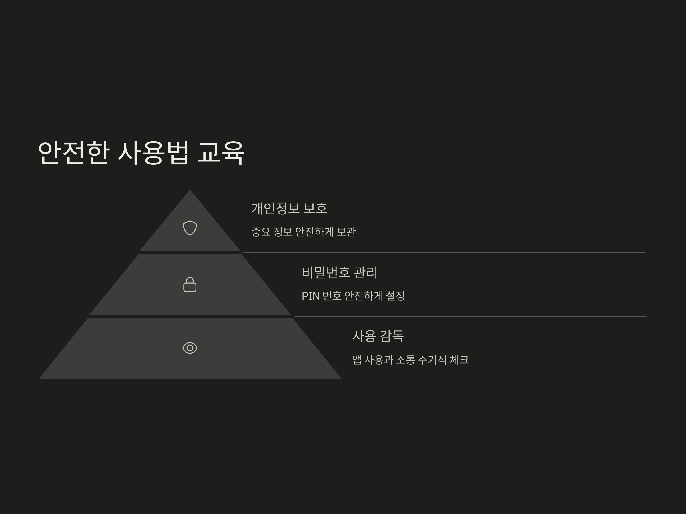 스마트폰 사용 시 가장 중요한 점은 바로 안전입니다. 손자녀가 스마트폰을 사용할 때는 개인정보를 보호하고, 불필요한 정보가 유출되지 않도록 주의해야 합니다. 손자녀가 스마트폰에서 어떤 앱을 사용하는지, 누구와 소통하는지 등을 주기적으로 체크하고, 안전한 인터넷 사용법을 교육하세요.
