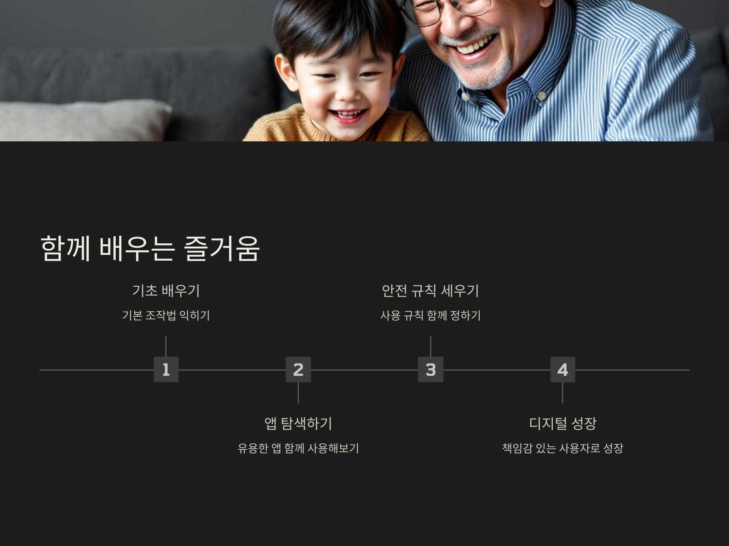 손자녀와 함께 스마트폰 사용법을 배우고, 그들이 디지털 환경에서 보다 안전하고 효과적으로 성장할 수 있도록 돕는 경험은 매우 값진 시간이 될 것입니다.