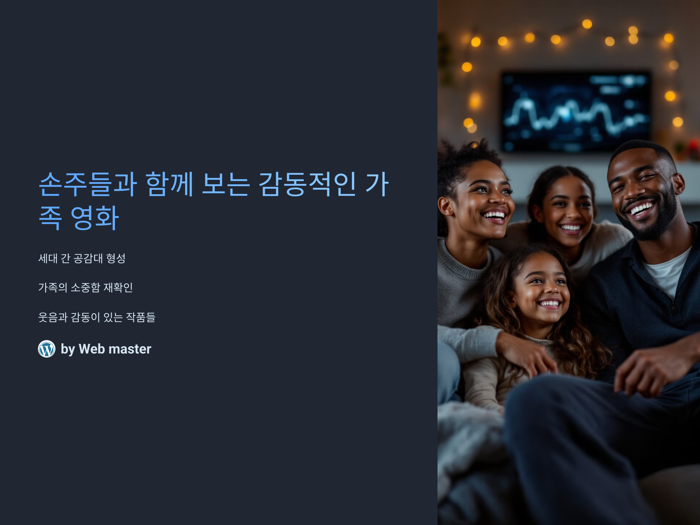 손주들과 함께 볼 수 있는 가족 영화는 단순한 즐거움을 넘어 세대 간의 공감과 감동을 나눌 수 있는 소중한 시간이 됩니다. 애니메이션부터 실사 영화까지, 다양한 장르의 추천작을 골라 보았으니 취향에 맞는 영화를 선택해보세요. 또한, 영화 감상을 마친 후 손주들과 영화 속 메시지에 대해 이야기하는 것도 좋은 추억이 될 것입니다.