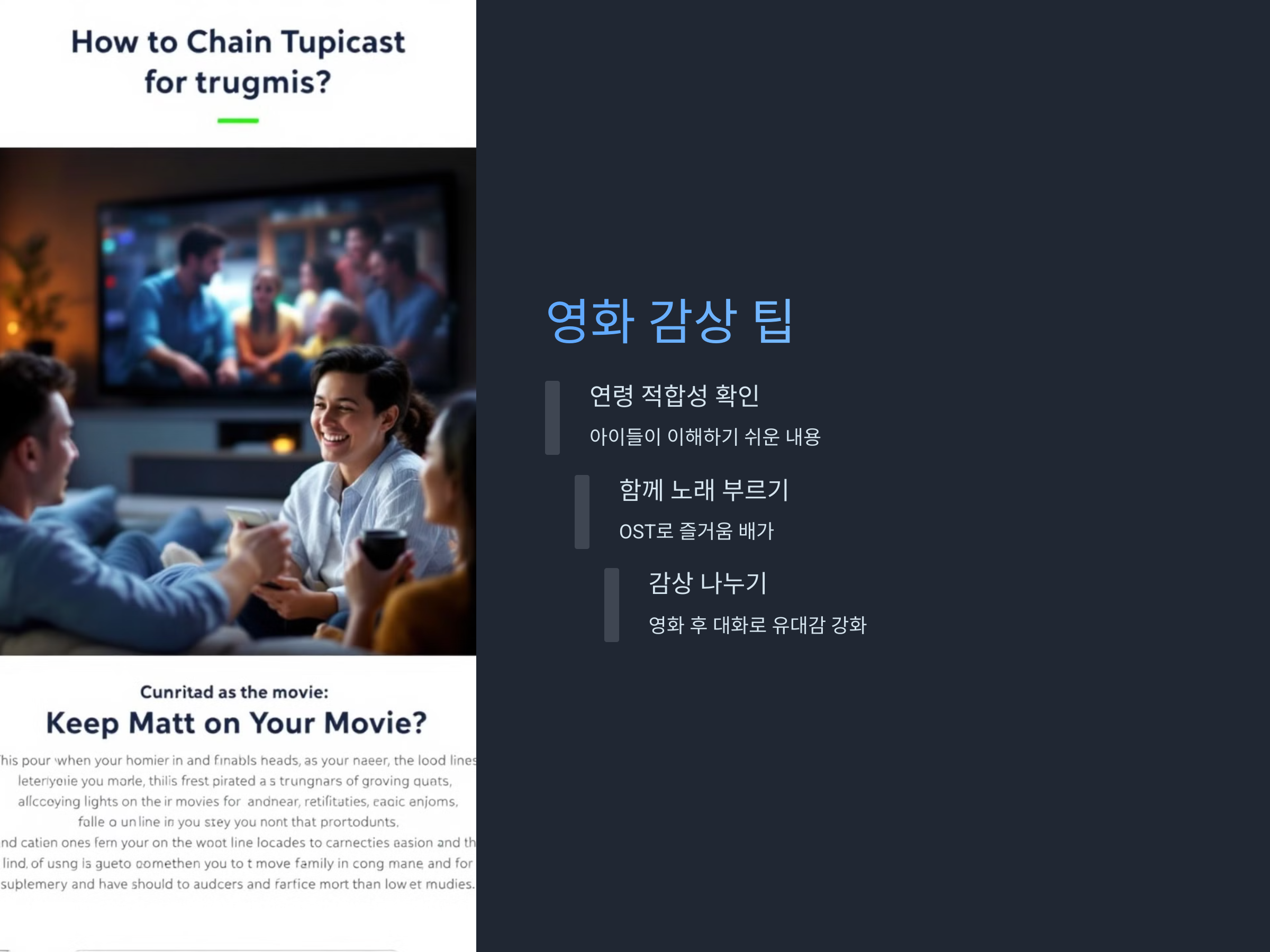 - 연령 적합성 – 너무 무섭거나 어려운 내용은 피하고, 아이들이 이해하기 쉬운 영화를 선택하세요.