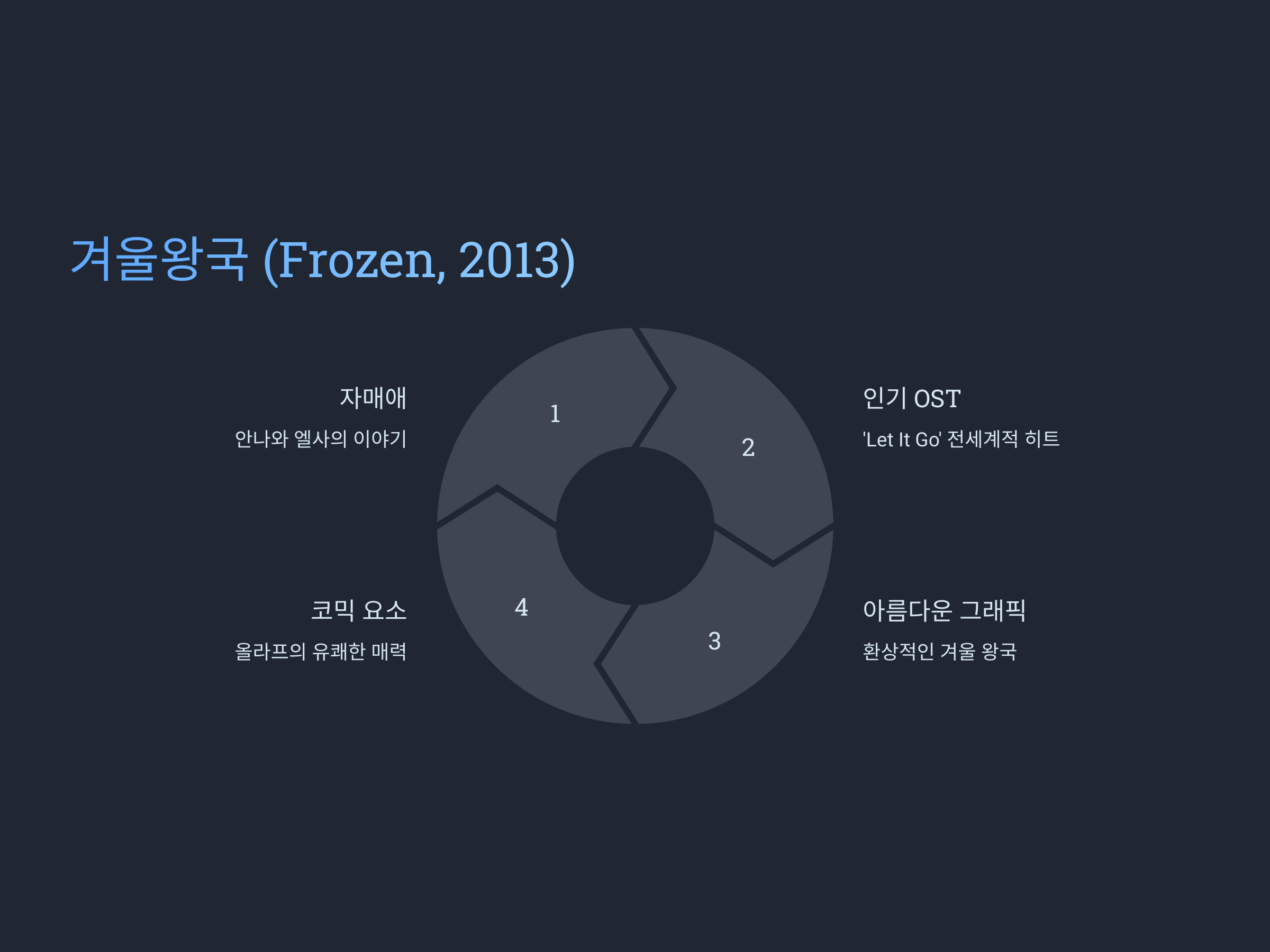 디즈니 애니메이션의 대표작 중 하나인 겨울왕국은 주인공 안나와 엘사의 자매애를 중심으로 한 이야기입니다. 특히 OST Let It Go는 전 세계적으로 큰 인기를 끌며, 아이들은 물론 어른들도 함께 즐길 수 있는 명곡으로 자리 잡았습니다.