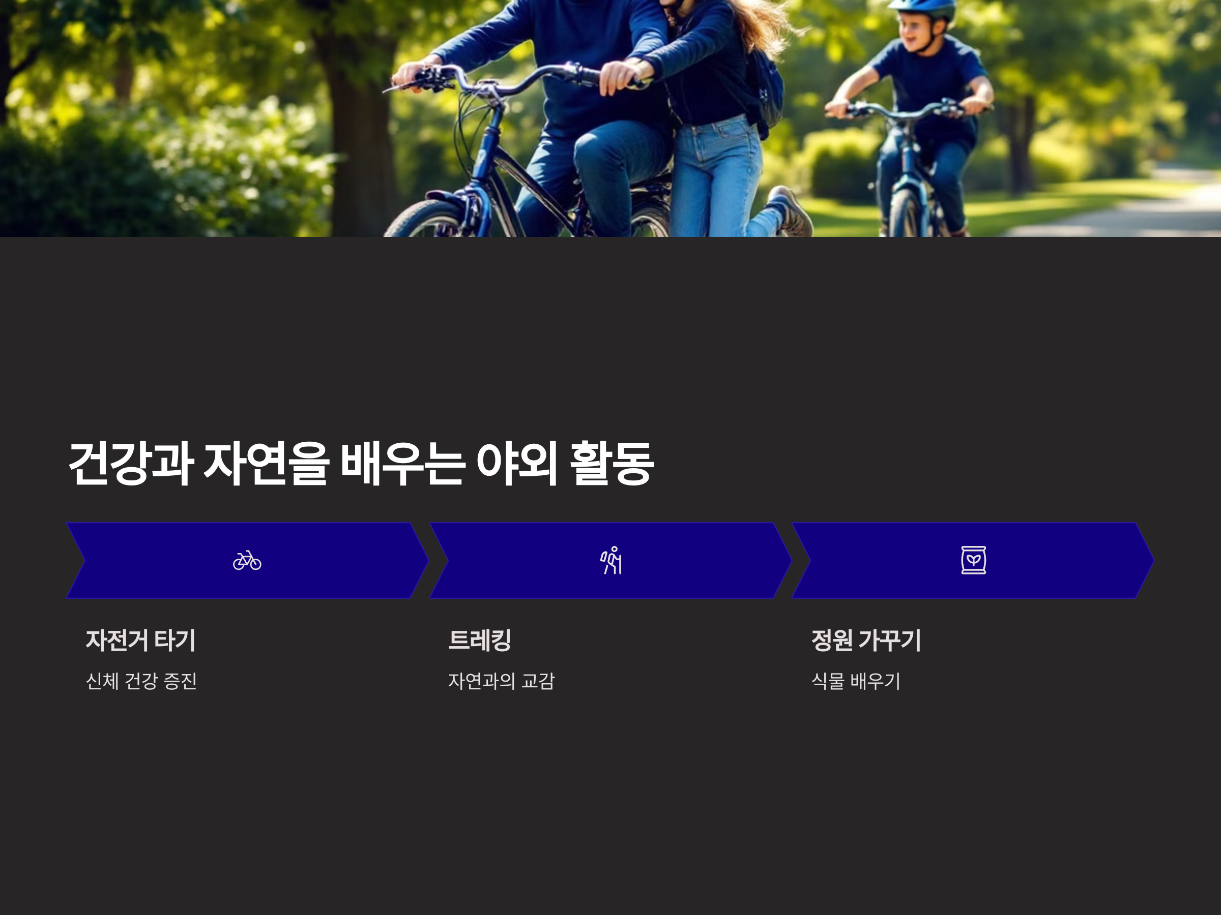 야외 활동은 손주들과 함께할 수 있는 또 다른 멋진 취미입니다. 공원에서 자전거 타기, 산책, 트레킹, 그리고 작은 정원을 가꾸는 활동은 아이들에게 자연과의 교감을 느끼게 해줍니다. 손주들은 자연 속에서 동물과 식물에 대해 배우고, 신체 건강도 증진시킬 수 있습니다. 특히 날씨 좋은 날에는 온 가족이 함께 바깥에서 시간을 보내며 대화를 나누고, 손주들과의 관계도 더욱 돈독해질 수 있습니다.