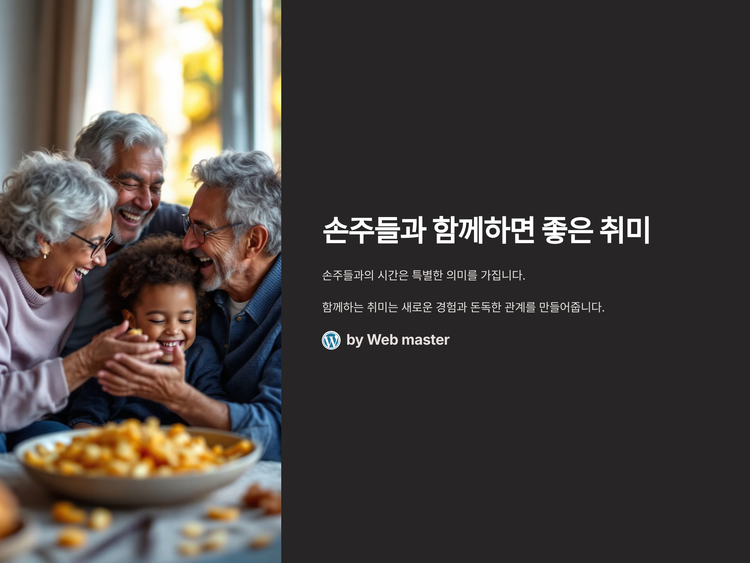 손주들과의 시간은 특별한 의미를 가지고 있습니다. 그 시간을 더욱 즐겁고 유익하게 만들기 위해서는 함께 할 수 있는 취미가 중요합니다. 취미 활동은 아이들에게 새로운 경험을 제공하며, 손주들과의 관계를 더욱 돈독하게 만들어줍니다. 이 글에서는 손주들과 함께 하면 좋은 취미들을 소개해드릴 텐데요, 함께 하는 시간이 더 소중해지는 다양한 활동들을 확인해보세요!