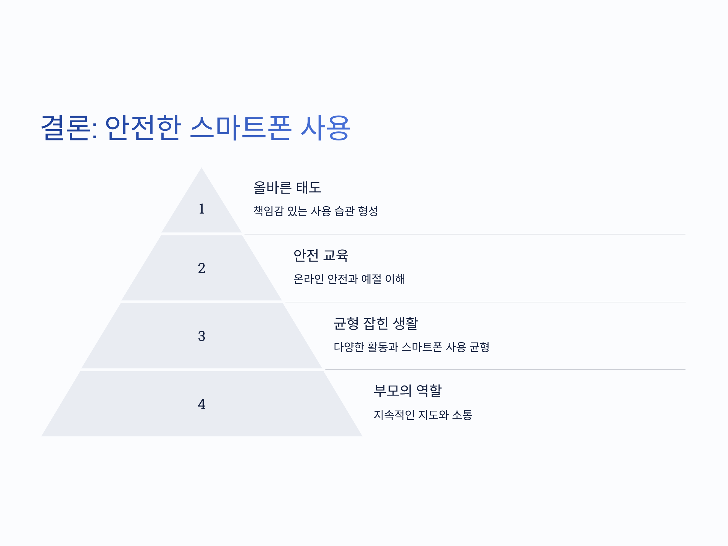 손주에게 스마트폰을 안전하게 사용하는 방법을 가르치는 것은 부모와 조부모의 큰 책임입니다. 스마트폰은 유용한 도구지만, 그 사용법을 제대로 알지 못하면 부작용을 초래할 수 있습니다. 따라서 스마트폰의 사용을 제한하고, 규칙을 설정하며, 안전한 콘텐츠를 선택하는 것이 중요합니다. 이와 함께, 부모와의 소통을 강화하고 균형 잡힌 생활을 유지하도록 도와주는 것이 중요합니다.