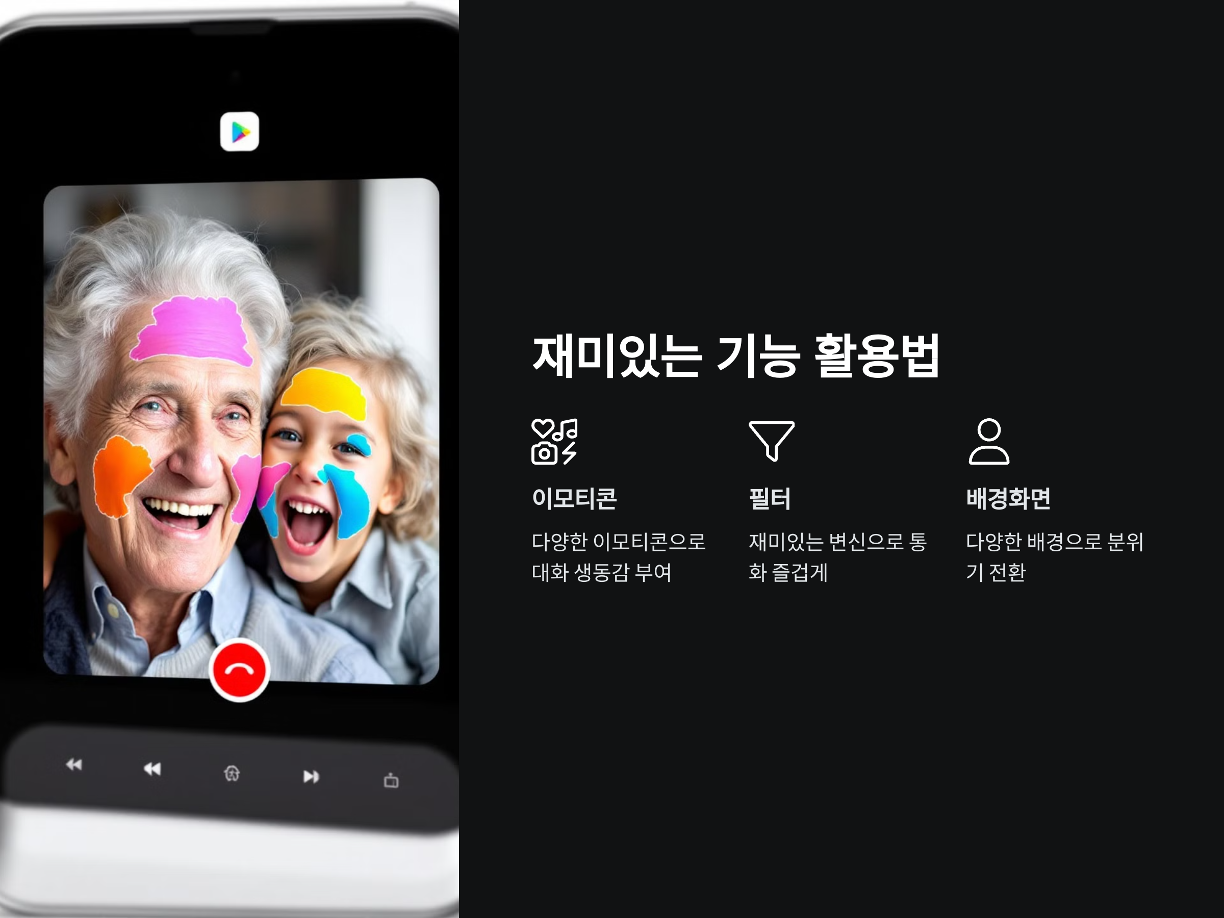 손주와 영상통화를 하면서, 단순한 대화만 하는 것이 아니라 재미있는 기능들을 활용하면 더 즐거운 시간이 될 수 있습니다. 요즘 많은 영상통화 앱에는 다양한 필터나 이모티콘 기능이 제공되어, 대화를 더욱 생동감 있게 만들어 줍니다.