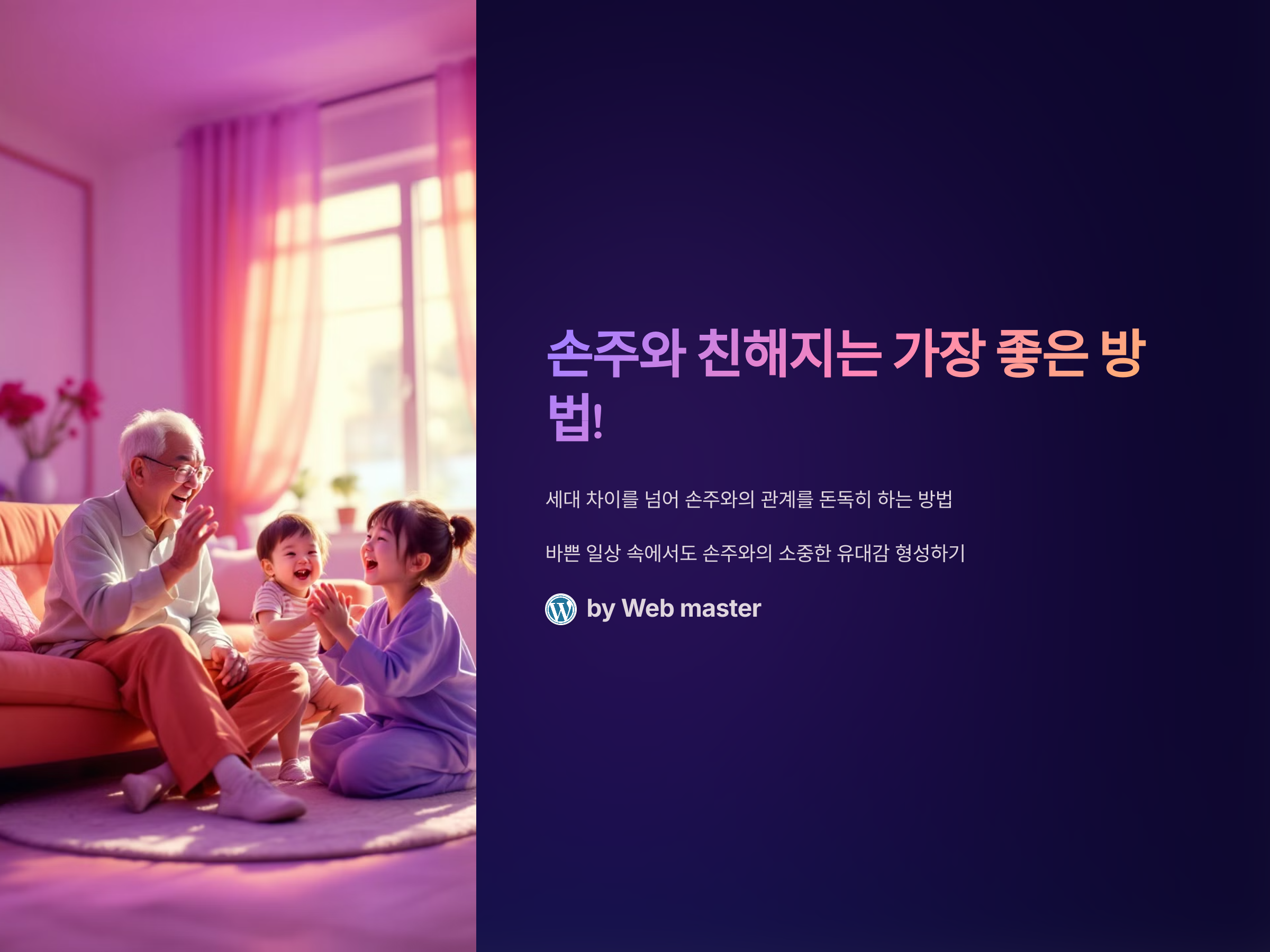 손주와의 관계는 대부분의 조부모에게 큰 행복감을 주지만, 때때로 세대 차이로 인해 소통이 어려운 경우도 있습니다. 특히 바쁜 일상 속에서 손주와의 관계를 어떻게 더욱 친밀하게 만들 수 있을지 고민하는 분들이 많습니다. 그런데, 손주와의 관계를 잘 형성하는 방법은 사실 간단하면서도 중요한 원칙들이 있습니다. 이 포스트에서는 손주와 친해지는 방법에 대해 알아보겠습니다. 어떻게 해야 손주와 더 가까워질 수 있을까요? 그 방법을 하나씩 차근차근 소개해드리겠습니다.