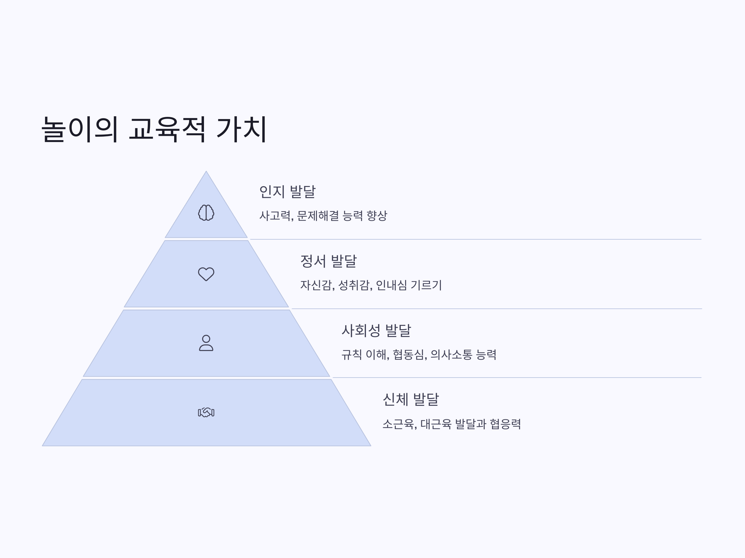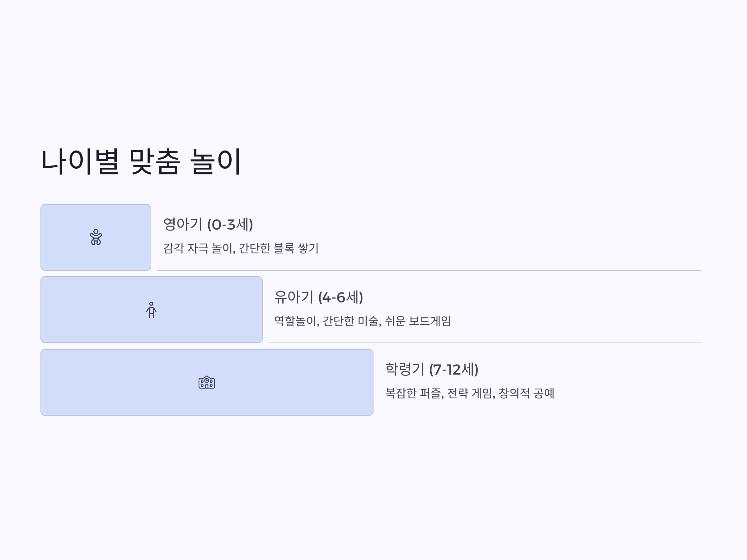 실내 놀이를 선택할 때 중요한 점은 재미뿐만 아니라 아이의 발달을 돕는 활동을 선택하는 것입니다. 놀이를 통해 아이는 사고력, 창의력, 감각을 키울 수 있고, 또한 할머니, 할아버지와의 유대감을 깊게 할 수 있습니다. 이 글에서는 손주와 함께 하면 좋을 실내 놀이들을 나이대별로 정리하여, 놀이를 통해 얻을 수 있는 교육적인 요소도 함께 소개합니다.