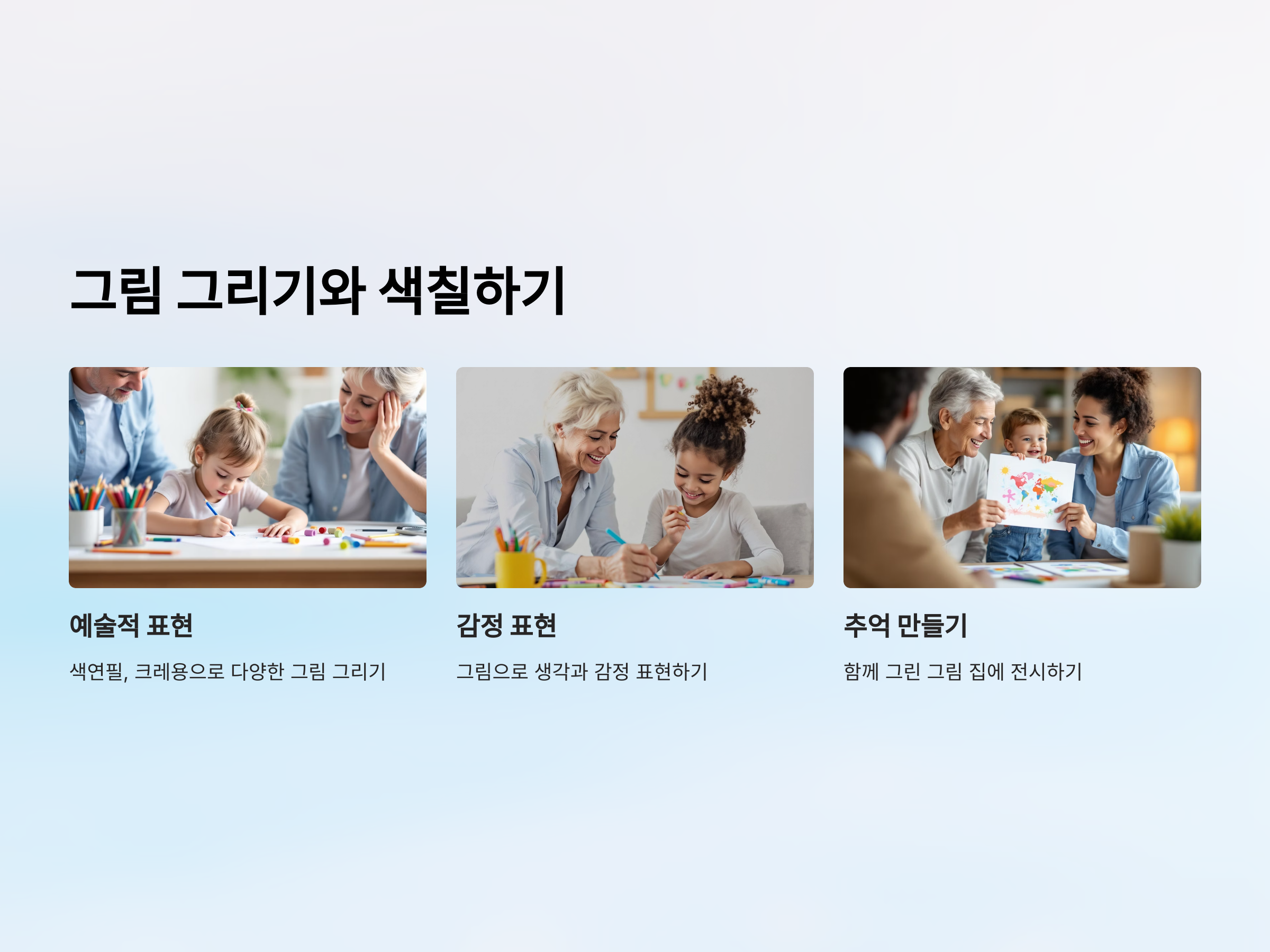 특히, 손주가 자신의 감정이나 생각을 그림을 통해 표현하면서 스스로를 더 잘 이해하고, 부모나 할머니, 할아버지와의 유대감을 더욱 깊게 느낄 수 있습니다. 함께 그린 그림을 집 안에 걸어두면, 그 순간의 소중한 추억을 되새길 수 있답니다.