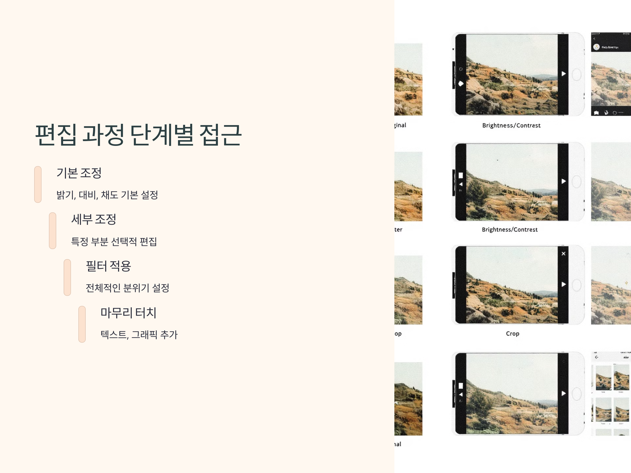 사진 편집에서 중요한 점은 과하지 않게 조정하는 것입니다. 예를 들어, 밝기를 과도하게 높이면 사진이 너무 하얗게 될 수 있습니다. 마찬가지로 채도를 지나치게 높이면 색이 인위적으로 보이기 때문에 자연스러운 느낌을 잃을 수 있습니다. 각 조정은 미세하게 하여 사진의 품질을 유지하는 것이 중요합니다.