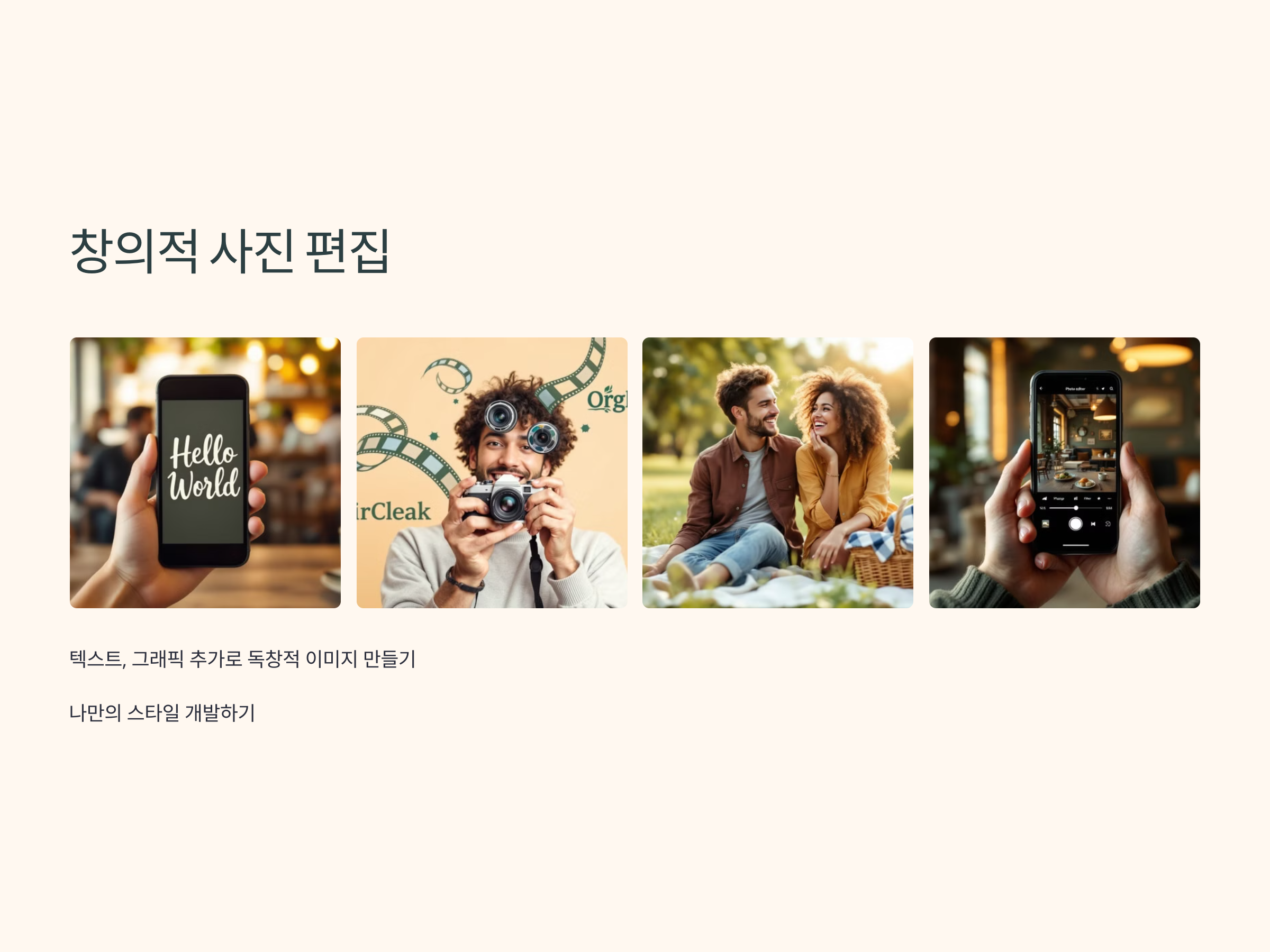 스마트폰 사진 편집에서 가장 중요한 점은 '창의성'입니다. 편집 도구를 잘 활용해보면, 정말 다양한 방식으로 사진을 꾸밀 수 있습니다. 이제는 편집을 통해 나만의 스타일을 만들 수 있는 기회가 많습니다.