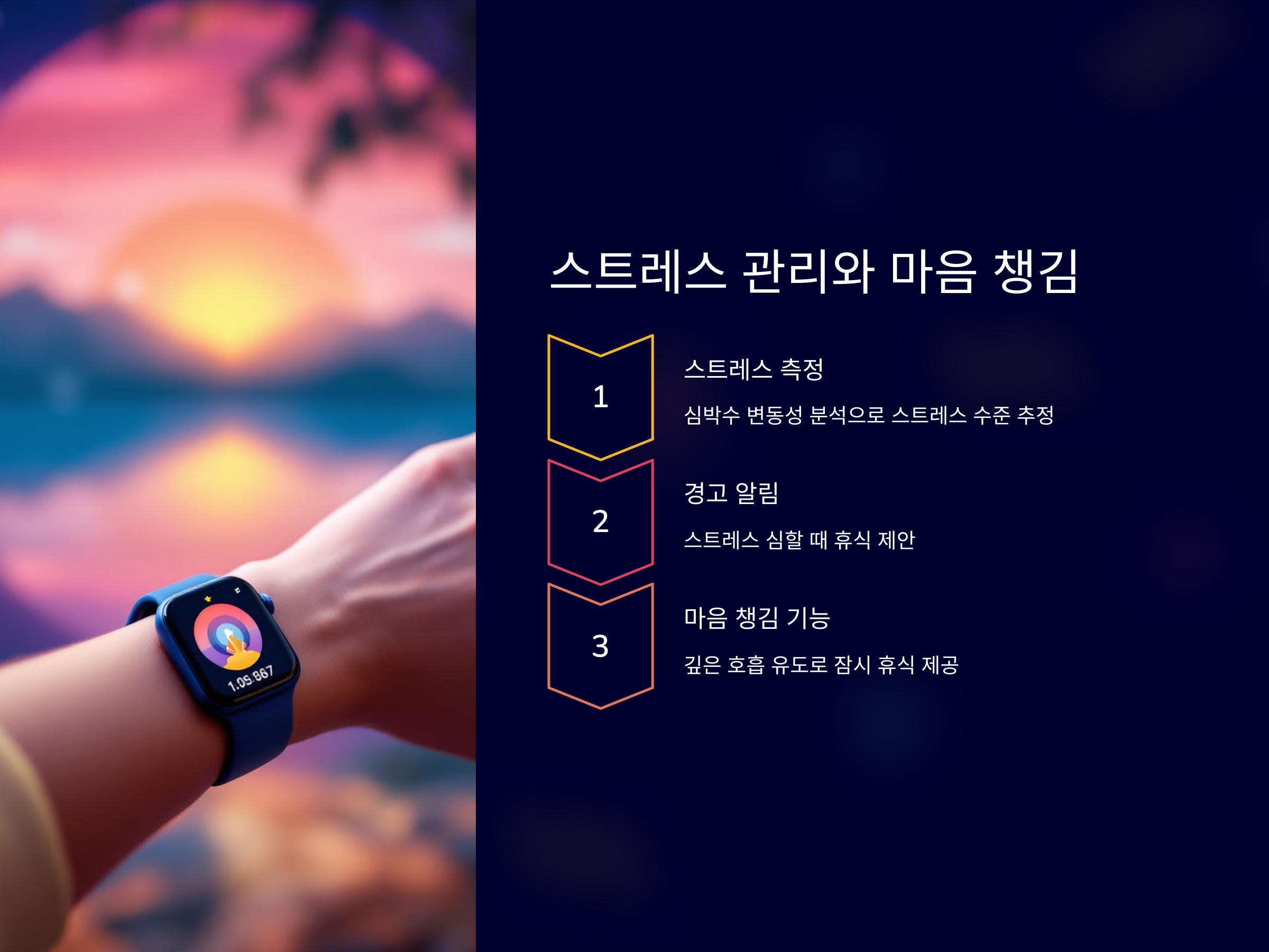 스트레스 관리는 신체 건강뿐만 아니라 정신 건강에도 중요한 영향을 미칩니다. 스마트워치를 통한 스트레스 추적과 마음 챙김은 더욱 스마트한 건강 관리의 일환이라고 할 수 있습니다.