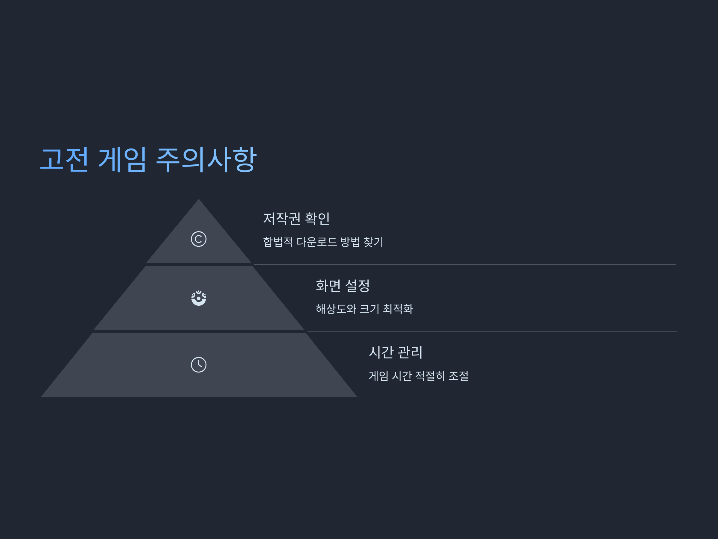 고전 게임을 스마트폰에서 다시 즐기면서 몇 가지 주의사항을 염두에 두는 것이 좋습니다. 첫째, 고전 게임의 ROM 파일은 저작권 문제가 될 수 있습니다. 게임을 합법적으로 다운로드하는 방법에 대해 반드시 확인하고, 문제가 발생하지 않도록 주의해야 합니다.