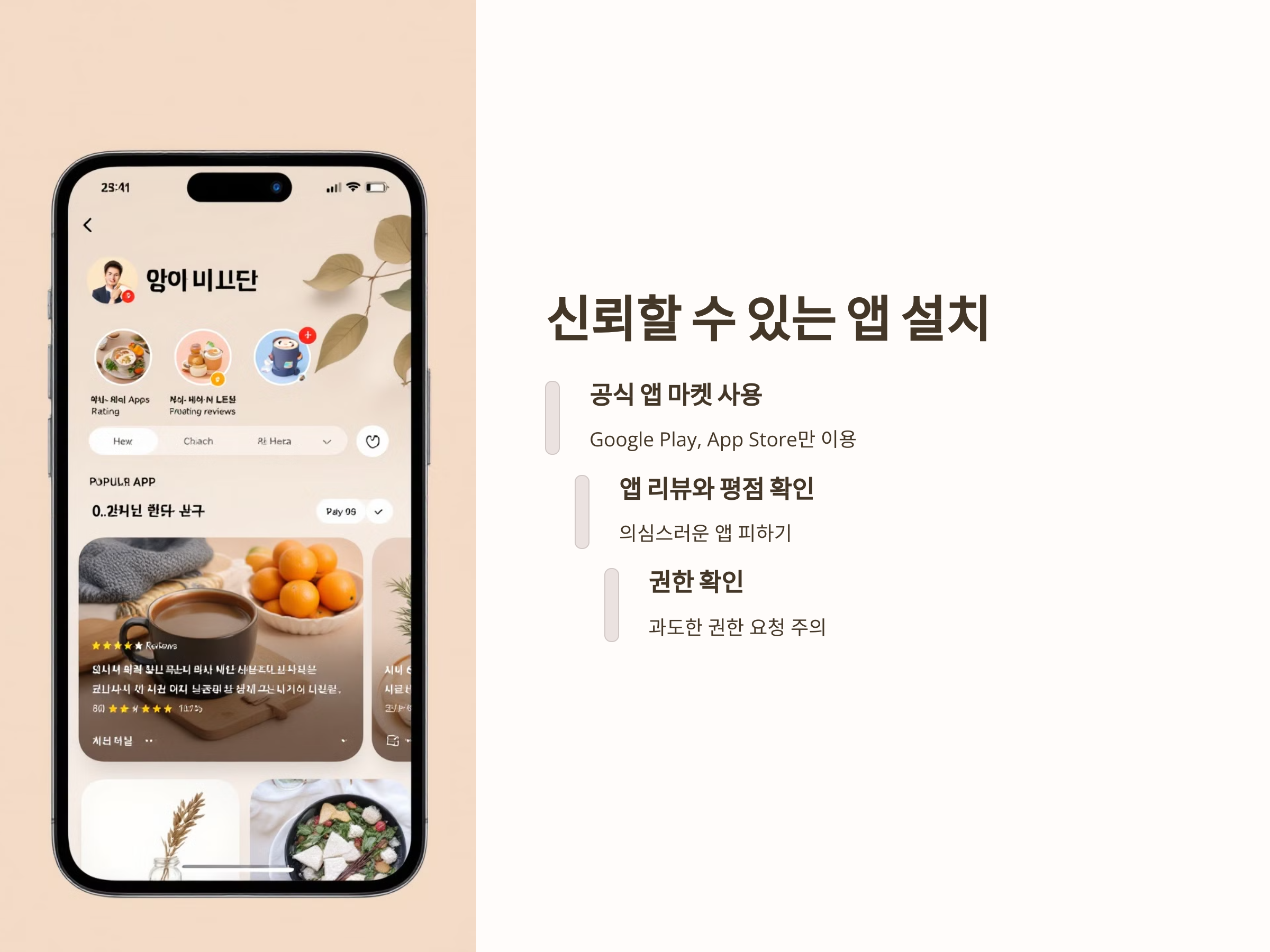 - 앱 리뷰와 평점 확인: 다운로드 전에 사용자 리뷰와 평점을 확인하여, 의심스러운 앱을 피하세요.