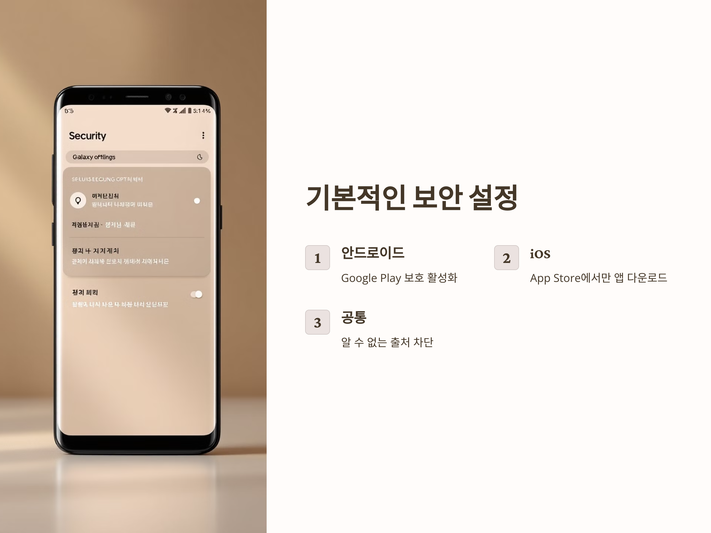 - 알 수 없는 출처 차단: 설정 > 보안 > 알 수 없는 출처
