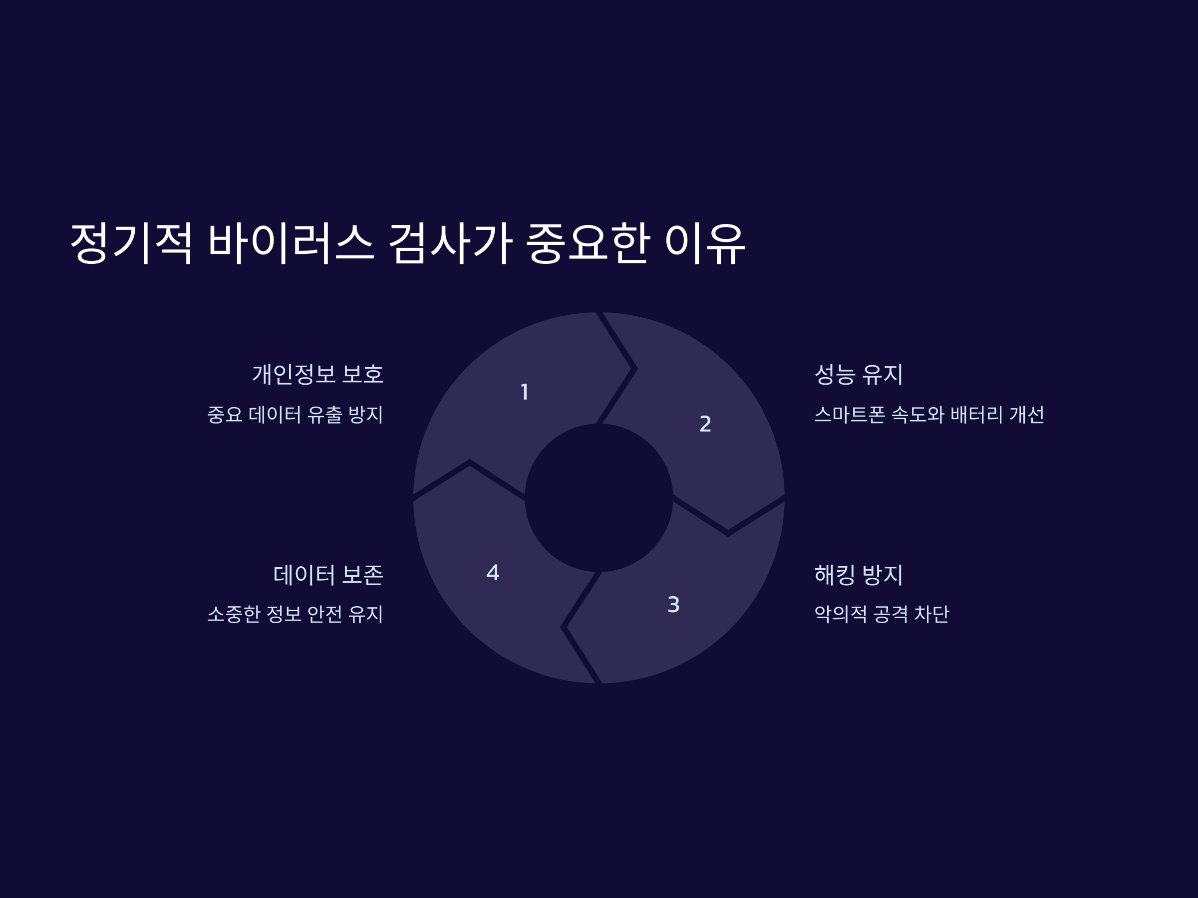 스마트폰에 바이러스가 감염되면 기기의 성능이 저하되고, 개인 정보가 유출될 위험이 커지므로 바이러스 검사와 삭제는 필수입니다. 특히 최근에는 스마트폰을 통한 해킹 공격이 증가하고 있어, 이를 예방하기 위한 방법을 정확히 알아두는 것이 중요합니다.