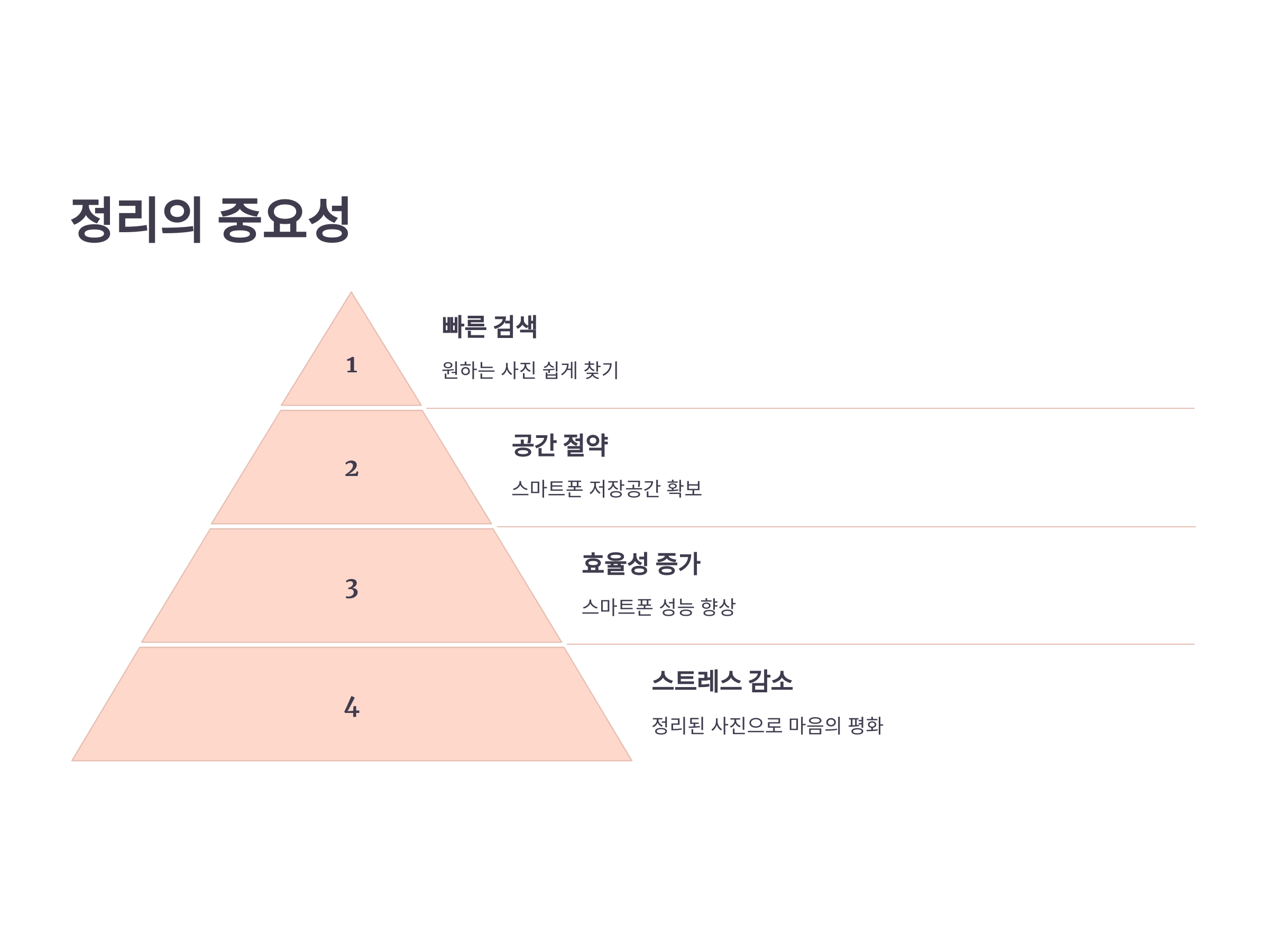 사진을 정리하는 가장 중요한 이유는 단순히 저장공간을 확보하기 위함만이 아닙니다. 여러 장의 사진을 정리해 놓으면 필요한 사진을 빠르게 찾을 수 있고, 더 중요한 사진들은 쉽게 백업할 수 있습니다. 그럼, 스마트폰에서 사진을 쉽게 정리하는 방법을 구체적으로 알아보겠습니다.