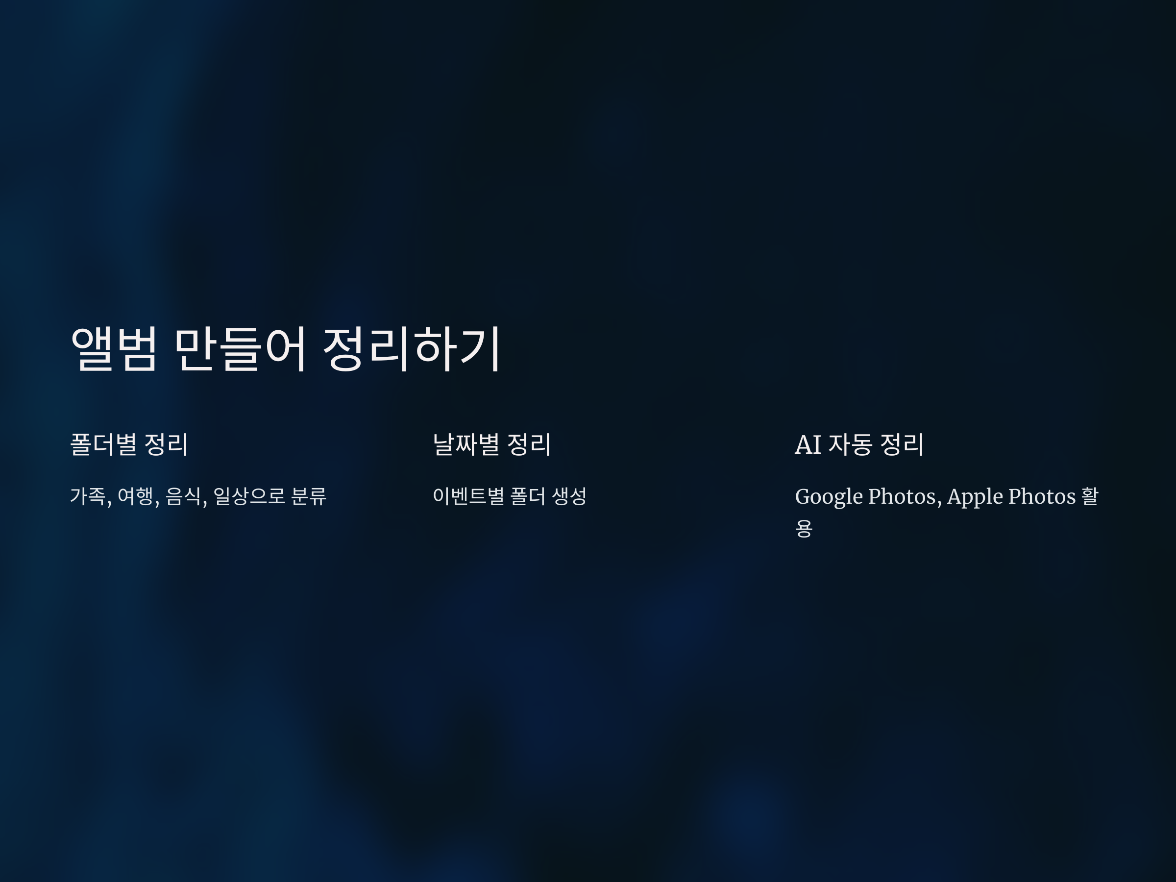 - 정리된 사진을 앨범으로 분류해 빠르게 찾기 쉽게 만들기