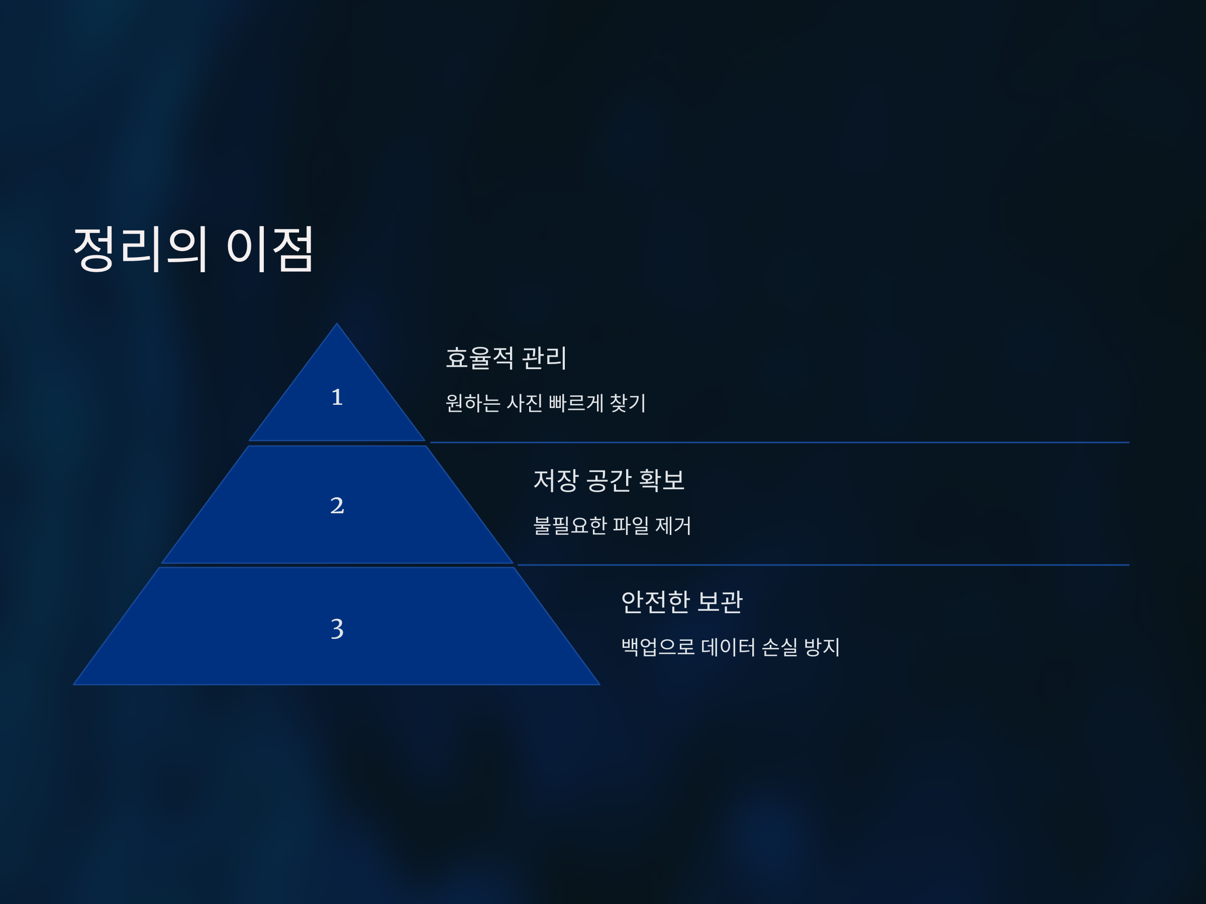 - 날짜별, 이벤트별로 폴더를 만들면 더욱 쉽게 관리할 수 있습니다.