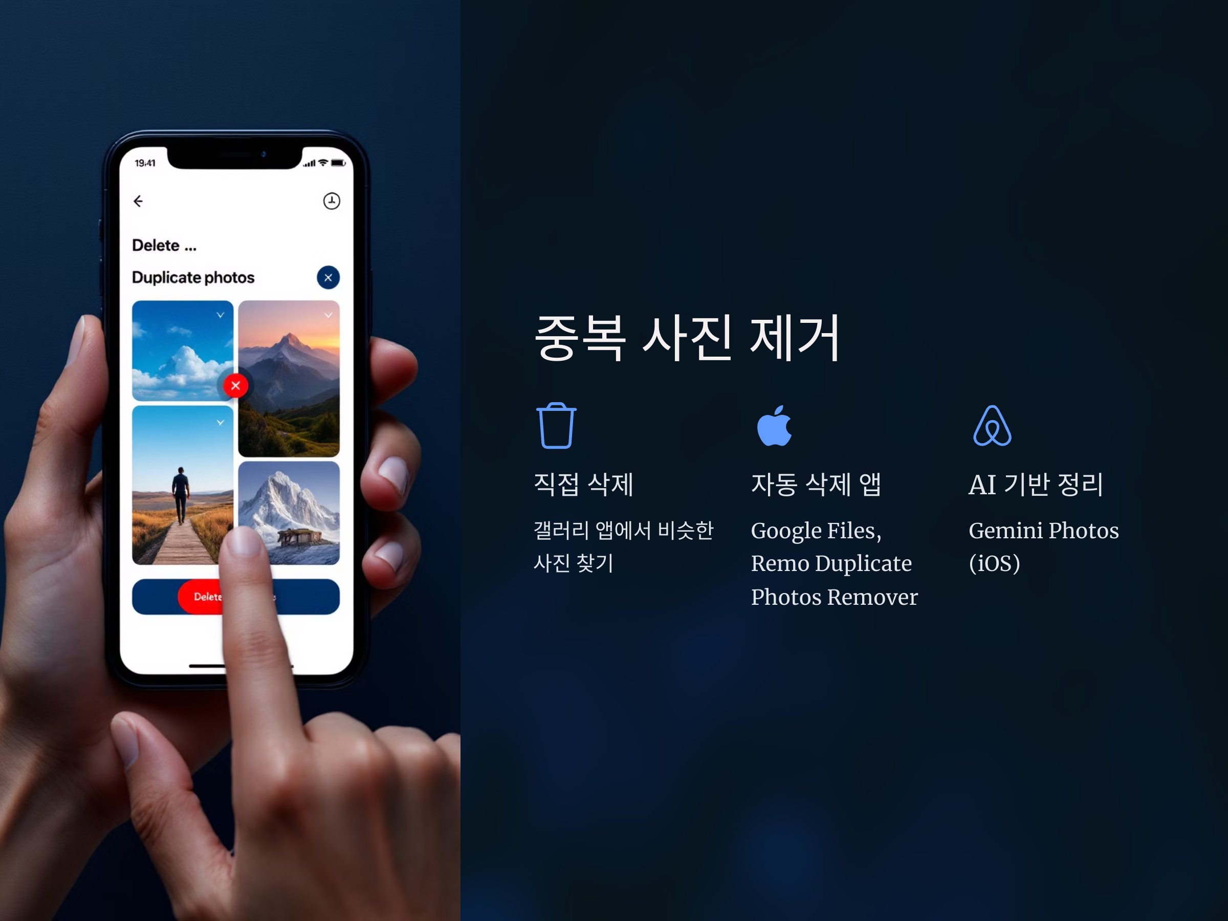 - 정리할 사진이 많다면 자동 삭제 앱을 활용하는 것이 효율적입니다.