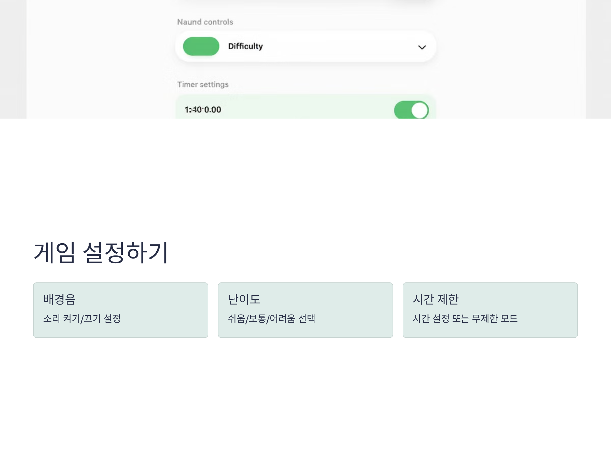 게임에 따라 난이도 설정, 게임 시간 제한, 추가 미션 등 다양한 설정을 할 수 있습니다. 이러한 설정을 통해 더욱 도전적인 플레이가 가능하며, 점수를 올리거나 다른 유저들과 경쟁할 수 있습니다.