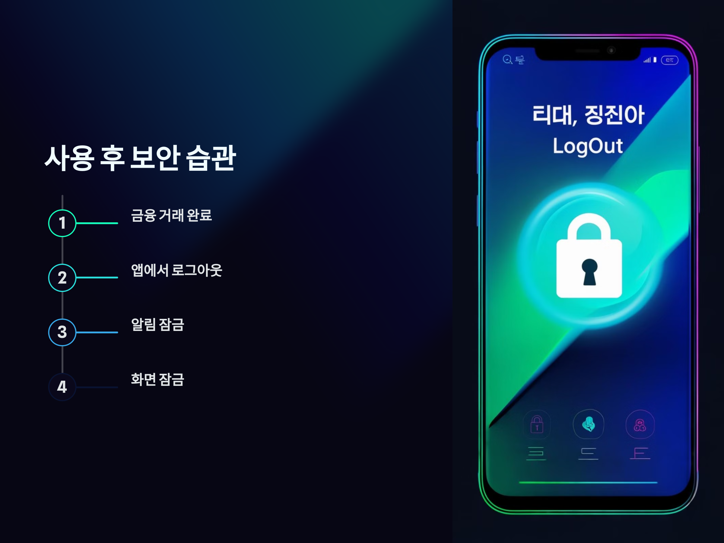 금융 거래 시 사용 후 로그아웃 및 화면 잠금