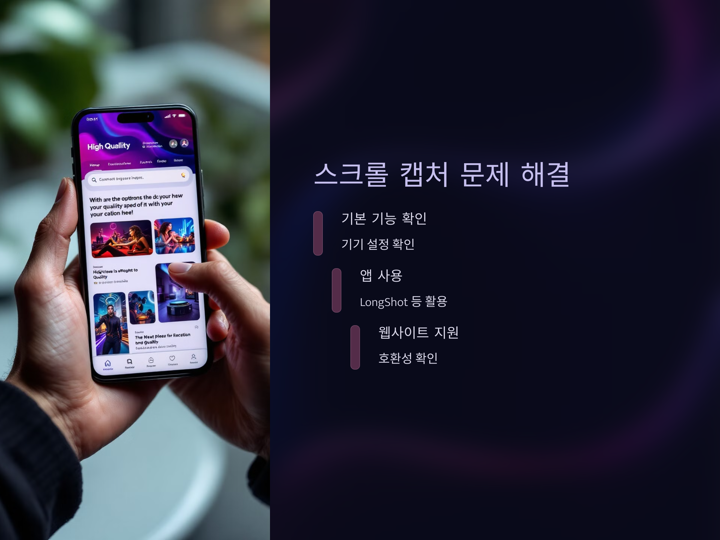 앱을 활용하여 더 다양한 캡처 기능을 사용할 수 있습니다. 예를 들어, LongShot 앱을 사용하면 긴 스크롤 캡처를 더 편리하게 할 수 있고, Screenshot Easy와 같은 앱을 통해 여러 가지 편집 기능도 활용할 수 있습니다.
