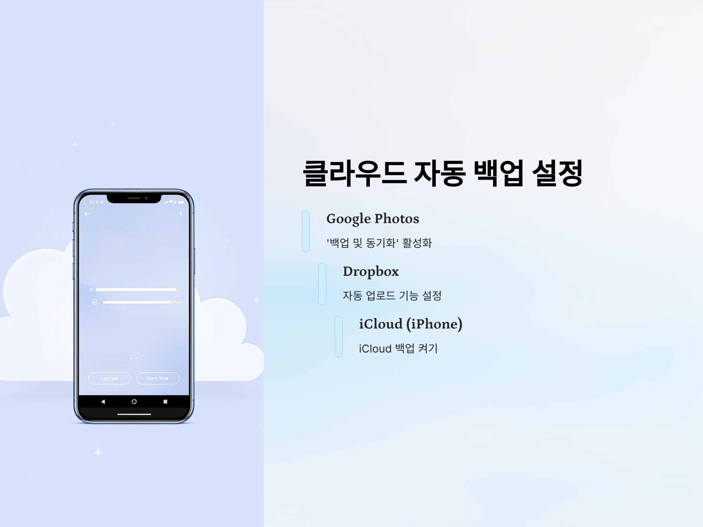 클라우드 백업을 정기적으로 설정해두면 만약의 경우에도 데이터를 쉽게 복구할 수 있습니다. 설정에서 자동 백업 옵션을 켜두는 것을 추천합니다.