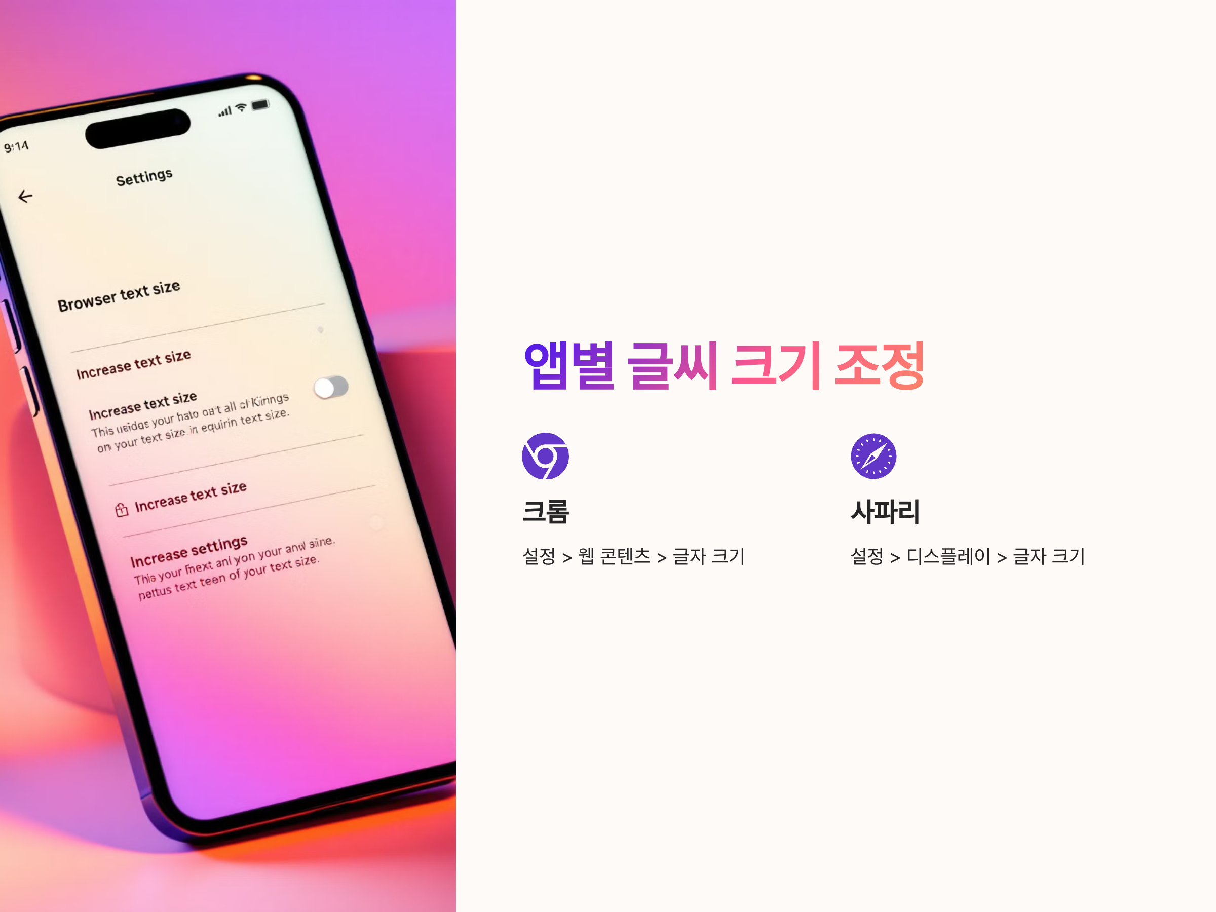 크롬, 사파리와 같은 웹 브라우저에서도 글씨 크기를 키울 수 있습니다.