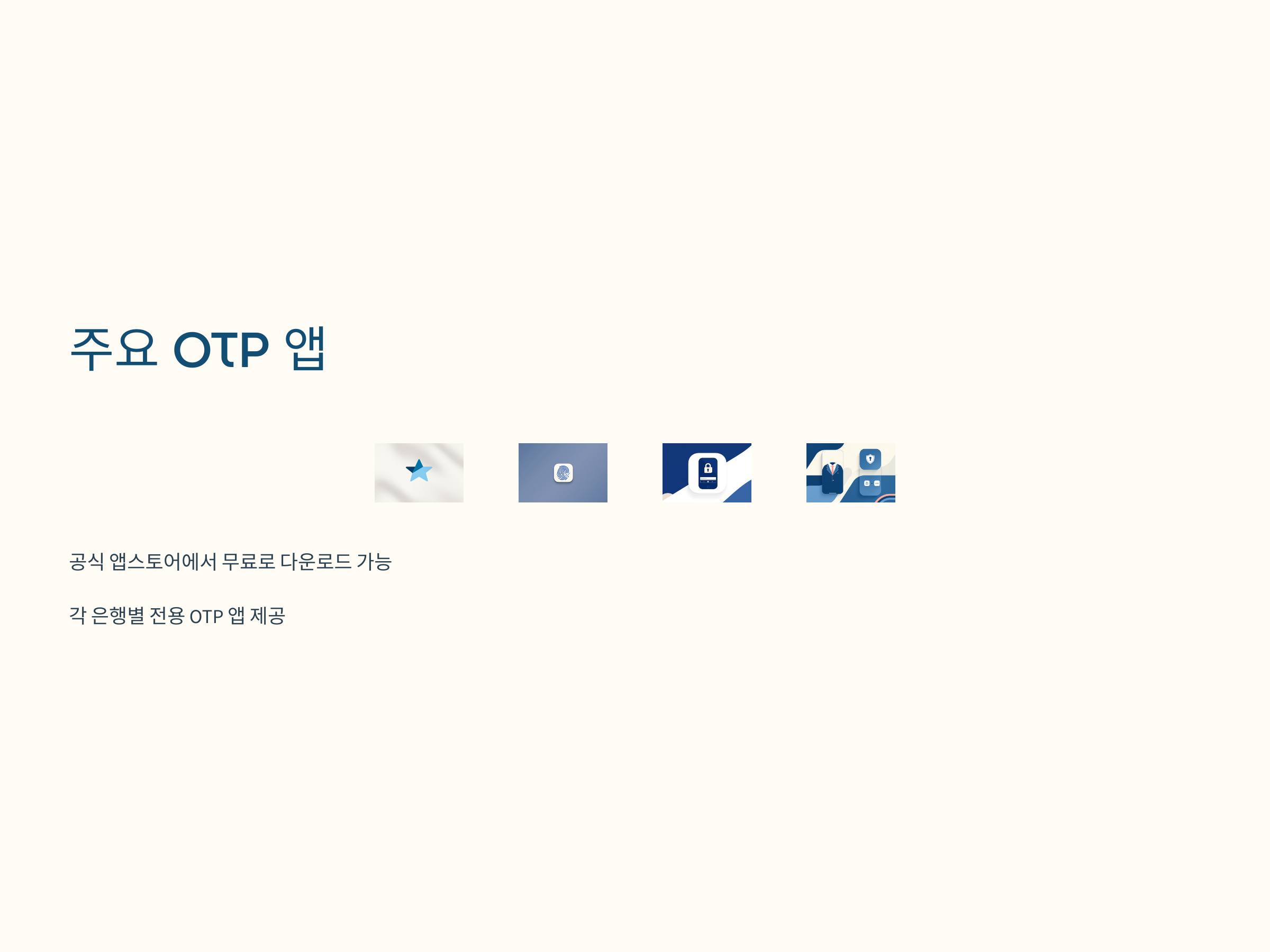 가장 먼저 해야 할 일은 스마트폰에 OTP 인증 앱을 설치하는 것입니다. 대표적인 앱으로는 'KB 스타뱅킹', '신한 S-OTP', '우리은행 OTP'와 같은 은행 앱들이 있습니다. 이 앱들은 공식 앱스토어에서 무료로 다운로드할 수 있습니다.