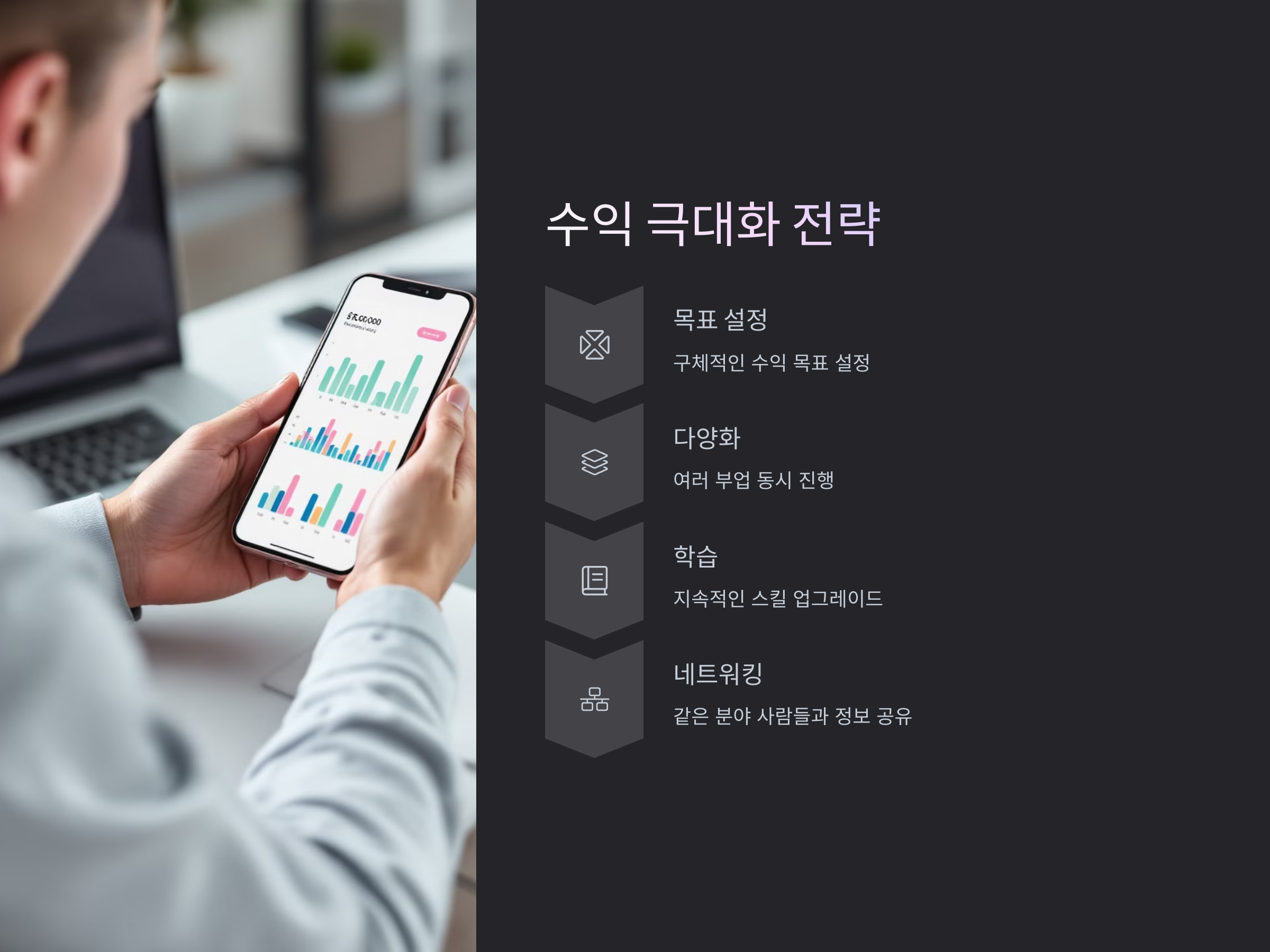 스마트폰을 활용한 부업에서 더 많은 수익을 얻기 위해서는 몇 가지 중요한 팁이 필요합니다. 이 팁들을 실천하면 부업이 더 효과적으로 성장할 수 있습니다.
