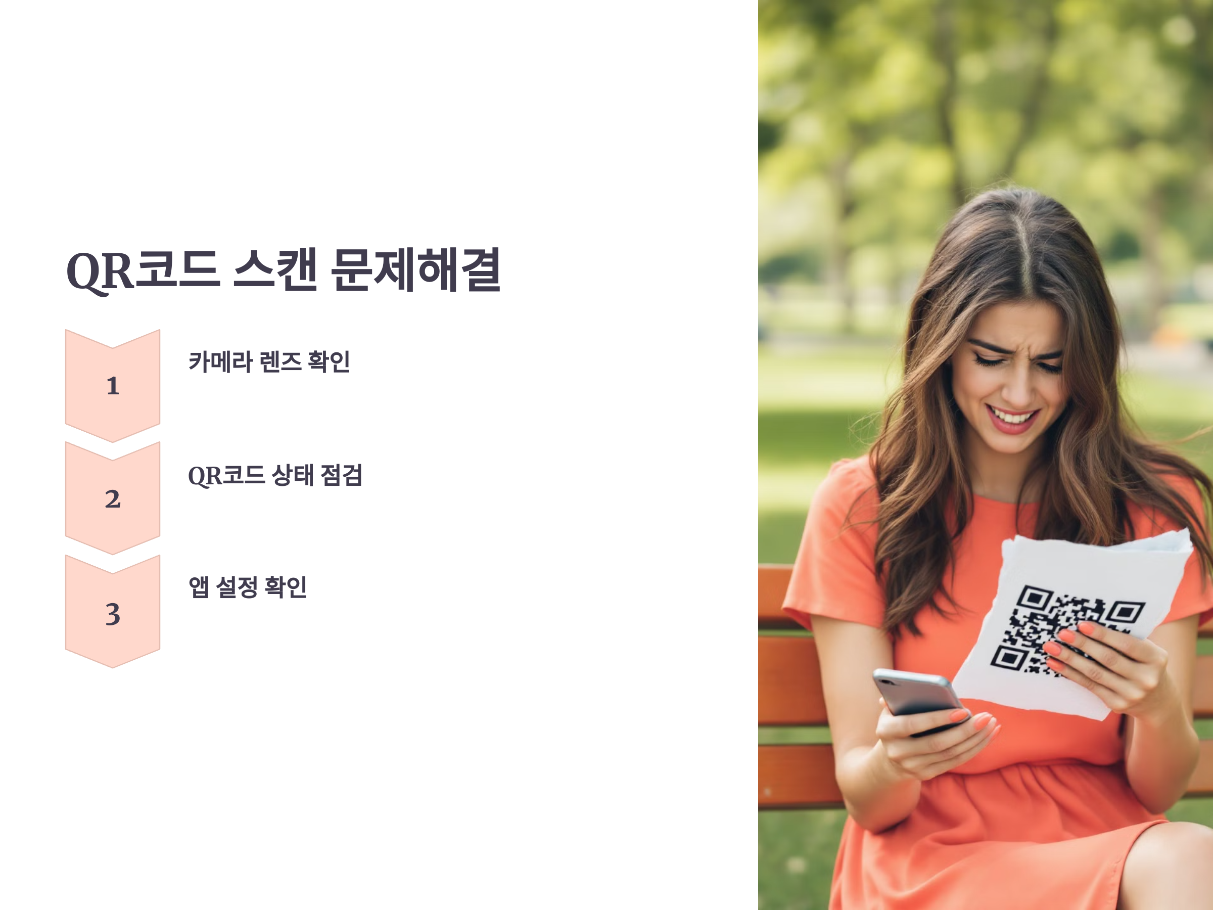 QR코드를 스캔하는 데 문제가 발생했다면, 스마트폰의 카메라 렌즈가 깨끗한지 확인하고, QR코드가 손상되지 않았는지 확인해 보세요. 또한, 카메라 앱의 설정에서 QR코드를 인식할 수 있도록 기능을 활성화하는 옵션이 있는지 점검해 보세요.