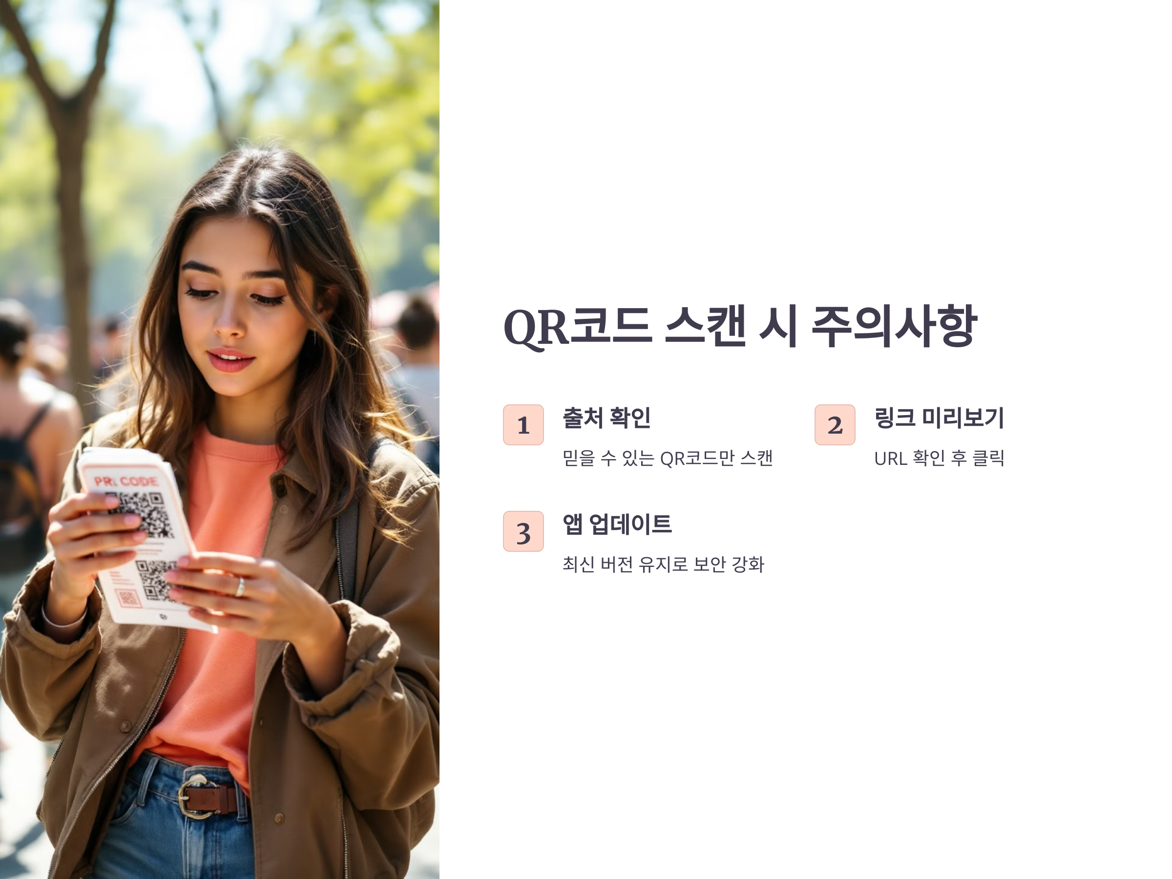QR코드를 스캔할 때 몇 가지 유의할 점이 있습니다. QR코드는 간혹 잘못된 링크나 위험한 사이트로 연결될 수 있으니 주의해야 합니다.