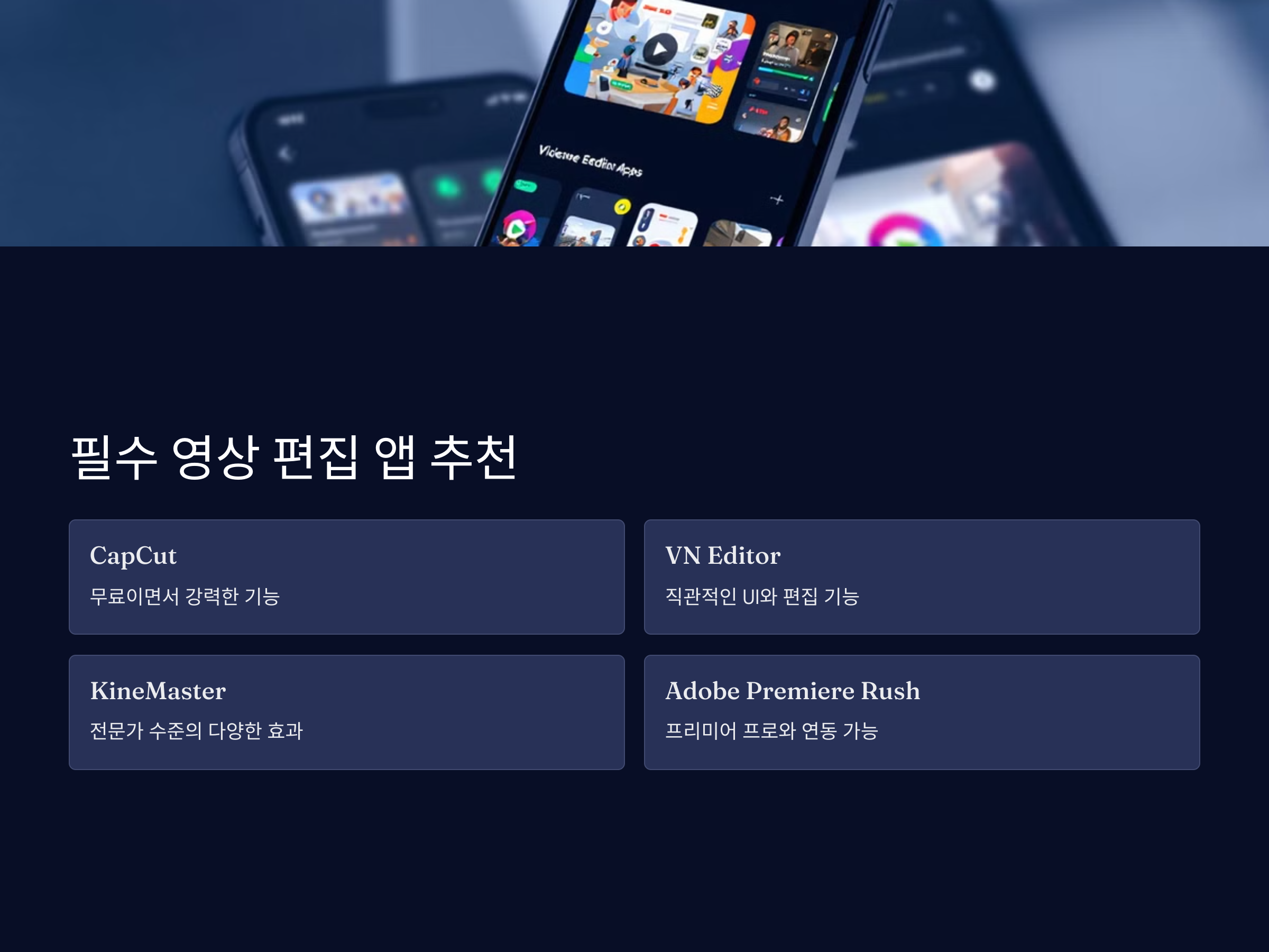 스마트폰에서 영상을 편집하려면 좋은 앱을 선택하는 것이 중요합니다. 다양한 앱이 있지만, 사용 편의성과 기능을 고려했을 때 아래 앱들이 강력한 후보입니다.