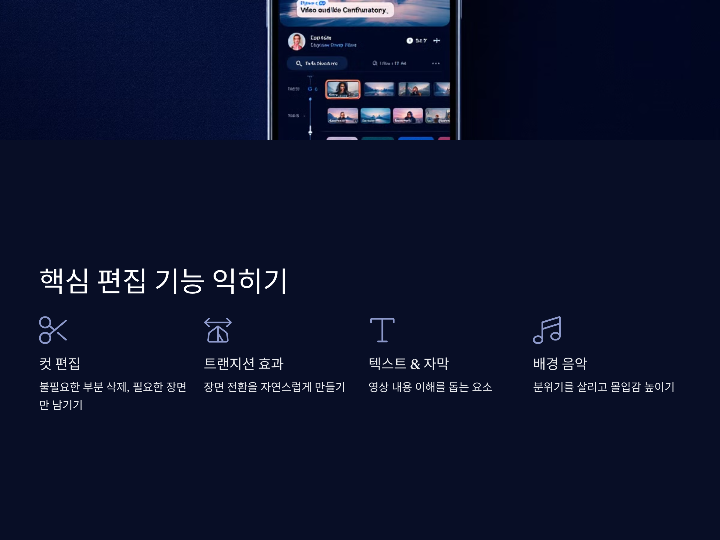 영상 편집의 핵심은 불필요한 부분을 잘라내고, 필요한 요소를 추가하는 것입니다. 기본적인 편집 기능을 익혀두면 퀄리티 높은 영상을 만들 수 있습니다.