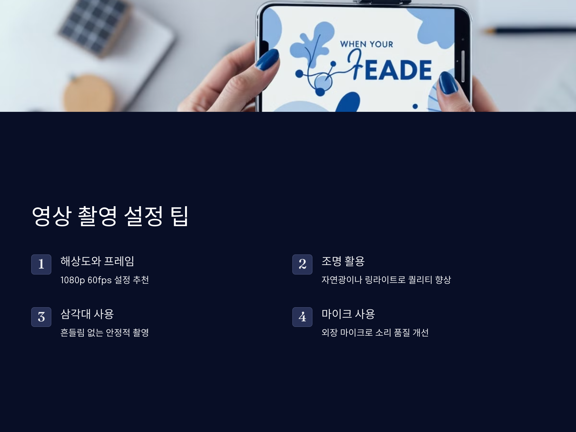 - 마이크 사용: 스마트폰 내장 마이크보다 외장 마이크를 활용하면 소리 품질이 개선됨