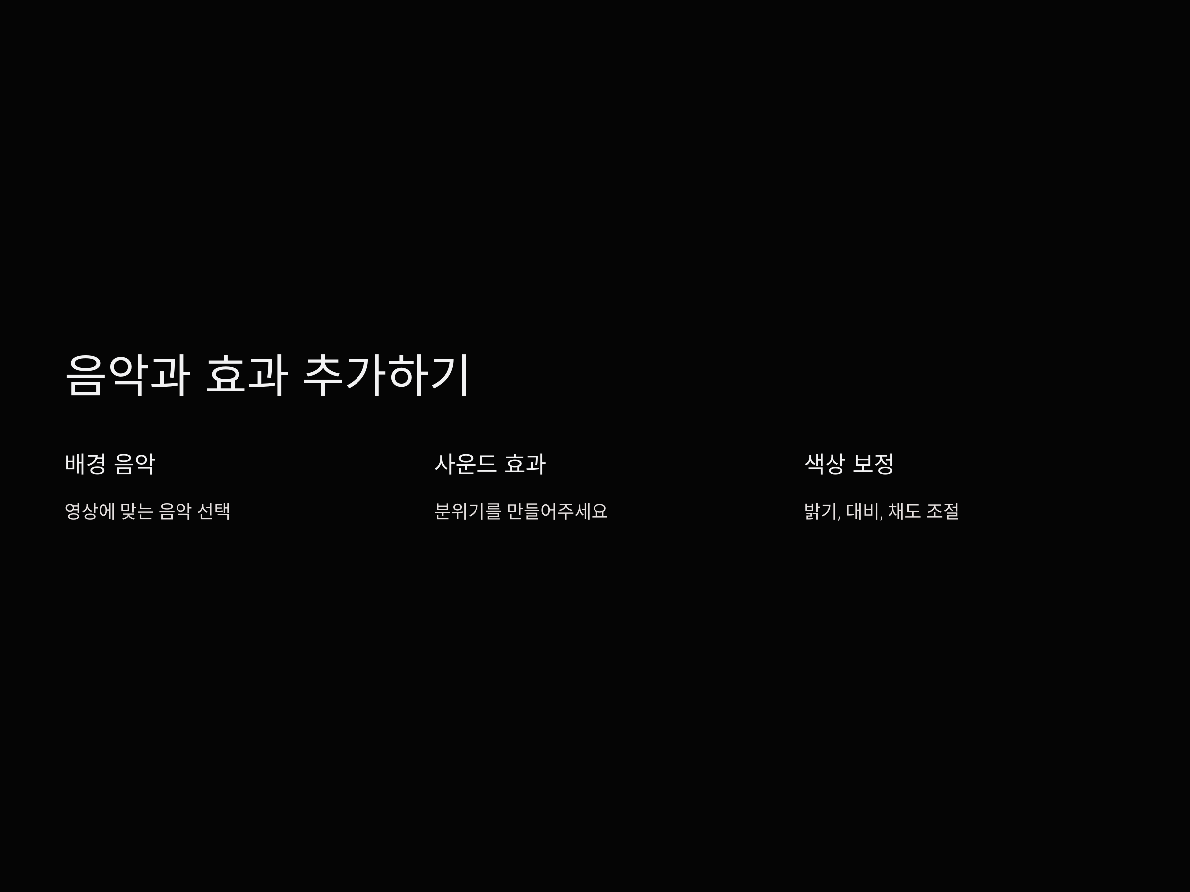 영상에 배경 음악과 사운드 효과를 추가하는 것도 중요한 부분입니다. 대부분의 앱에서 무료 음악과 효과를 제공하므로, 자신의 영상에 맞는 음악을 선택해 분위기를 만들어주세요.