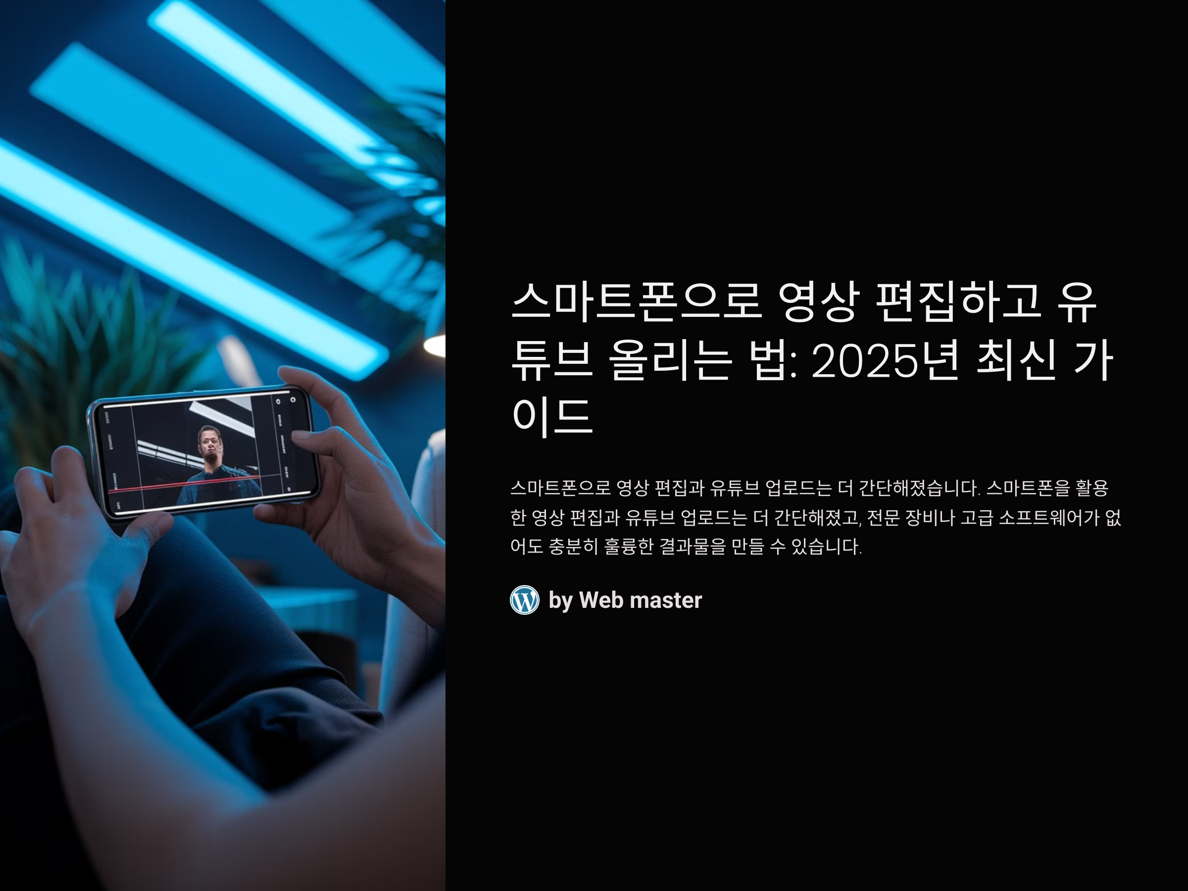 이 글에서는 스마트폰으로 영상 편집과 유튜브 업로드의 전 과정에 대해 자세히 설명합니다. 간단한 앱 선택부터 편집, 그리고 최종 업로드까지 단계별로 쉽게 따라 할 수 있는 가이드를 제공하겠습니다. 이제 스마트폰만 있으면 누구나 멋진 영상을 만들 수 있습니다!