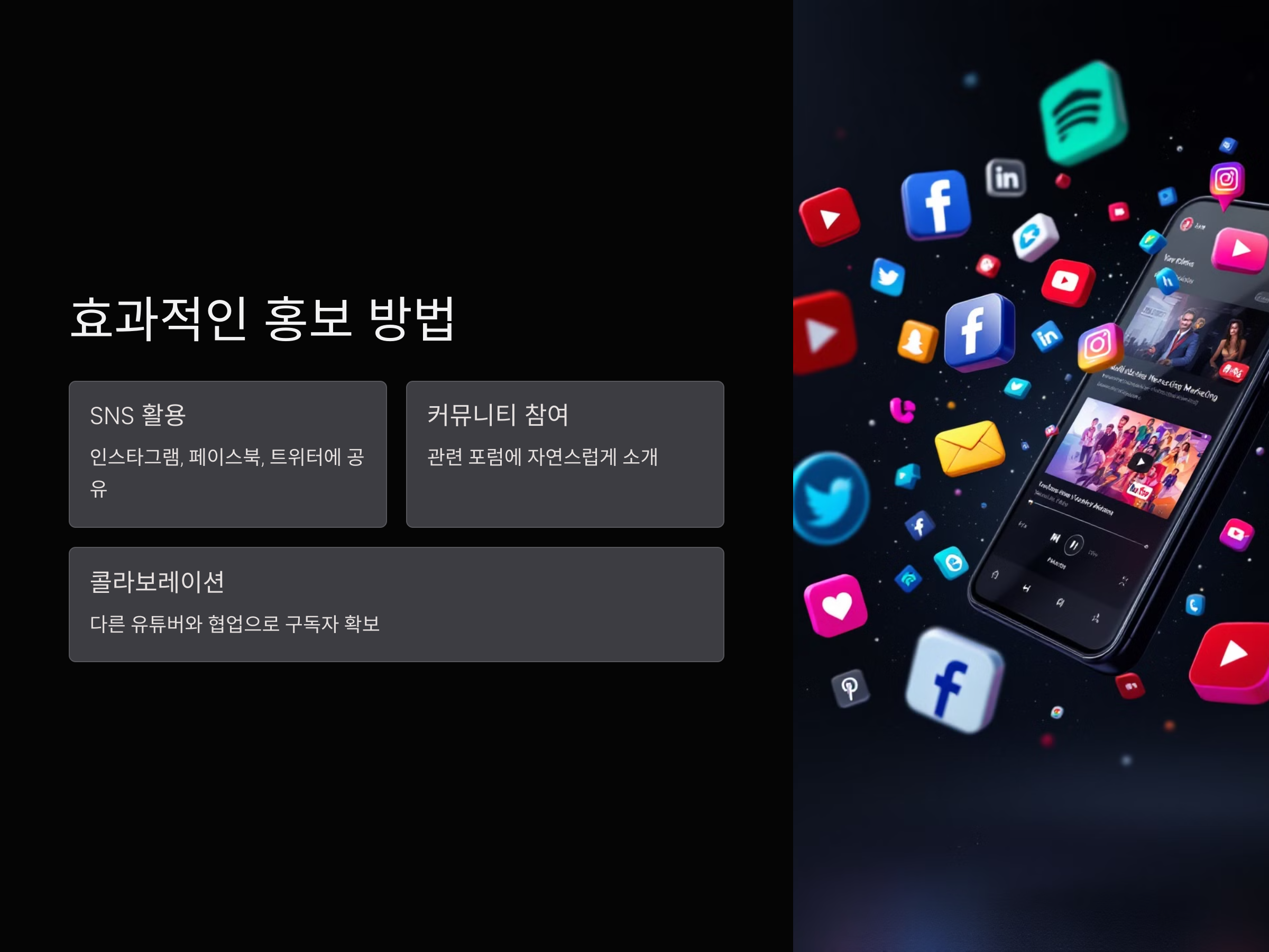 - 커뮤니티 참여: 관련된 주제의 온라인 커뮤니티나 포럼에 참여하여, 자신의 영상을 자연스럽게 소개할 수 있습니다. 단, 너무 과도한 홍보는 피하고, 진정성 있는 댓글과 답변을 남기는 것이 중요합니다.