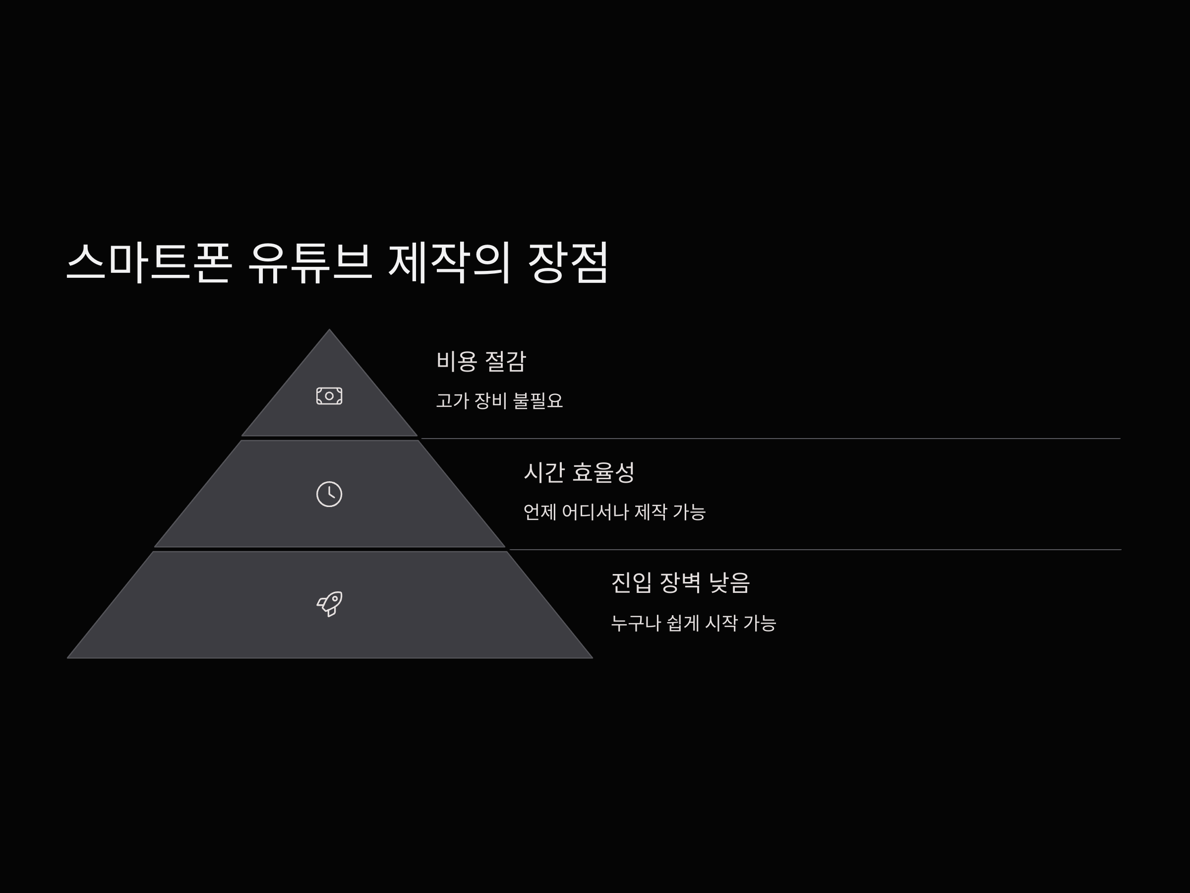 스마트폰을 이용한 영상 제작은 비용이 적고, 시간과 장소에 구애받지 않기 때문에 누구나 쉽게 유튜브에 도전할 수 있습니다. 처음 시작하는 사람이라면, 오늘부터라도 스마트폰으로 간단한 영상을 촬영해보세요!