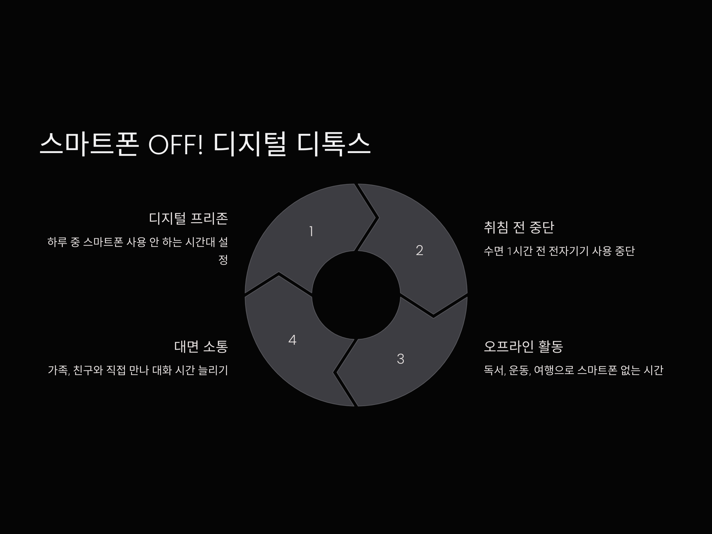 ✅ 하루 최소 1시간 디지털 디톡스 실천하기