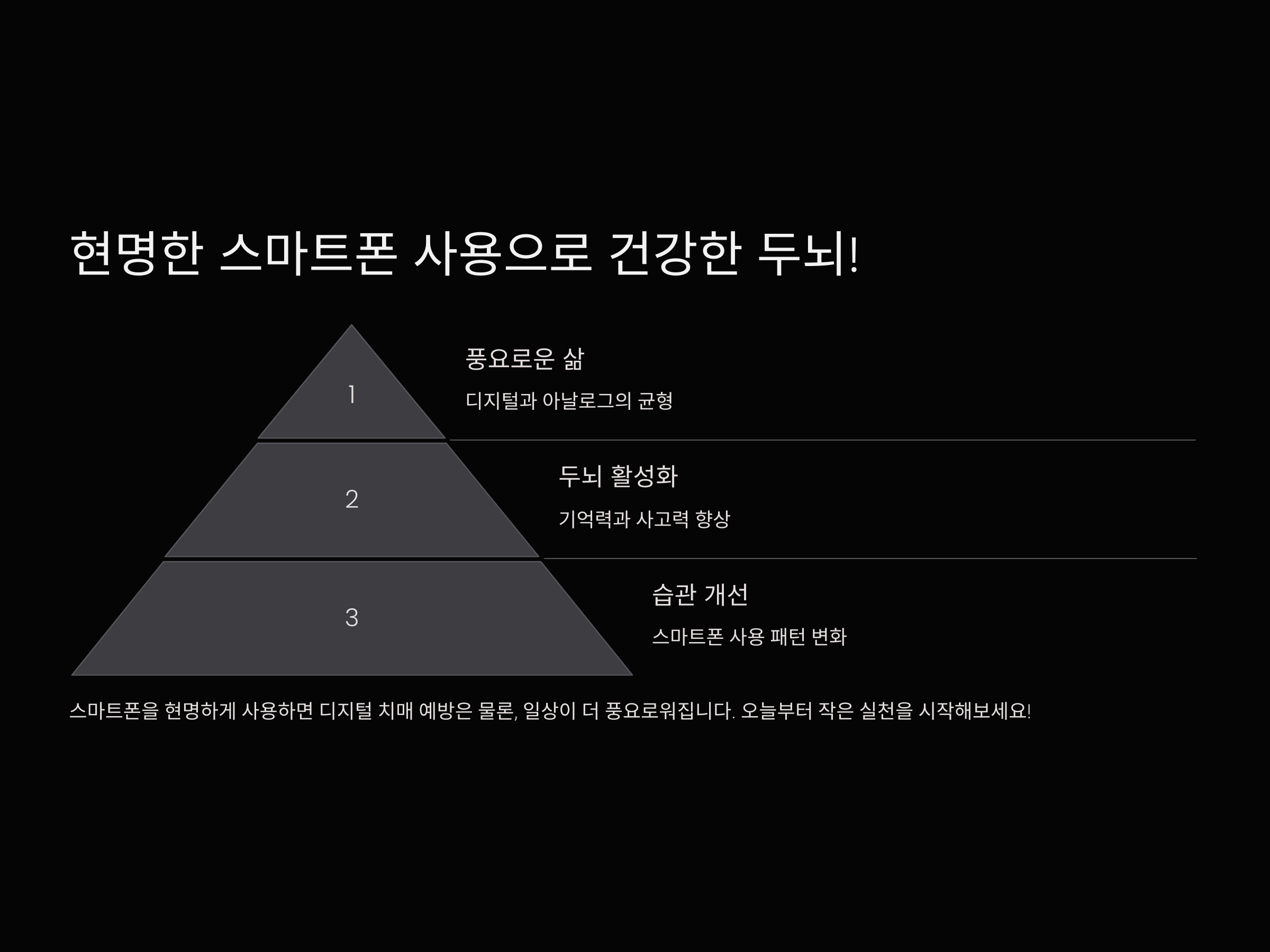 스마트폰을 현명하게 사용하면 디지털 치매를 예방할 수 있을 뿐만 아니라, 우리의 삶도 더 풍요로워집니다. 오늘부터 작은 실천을 시작해 보세요!