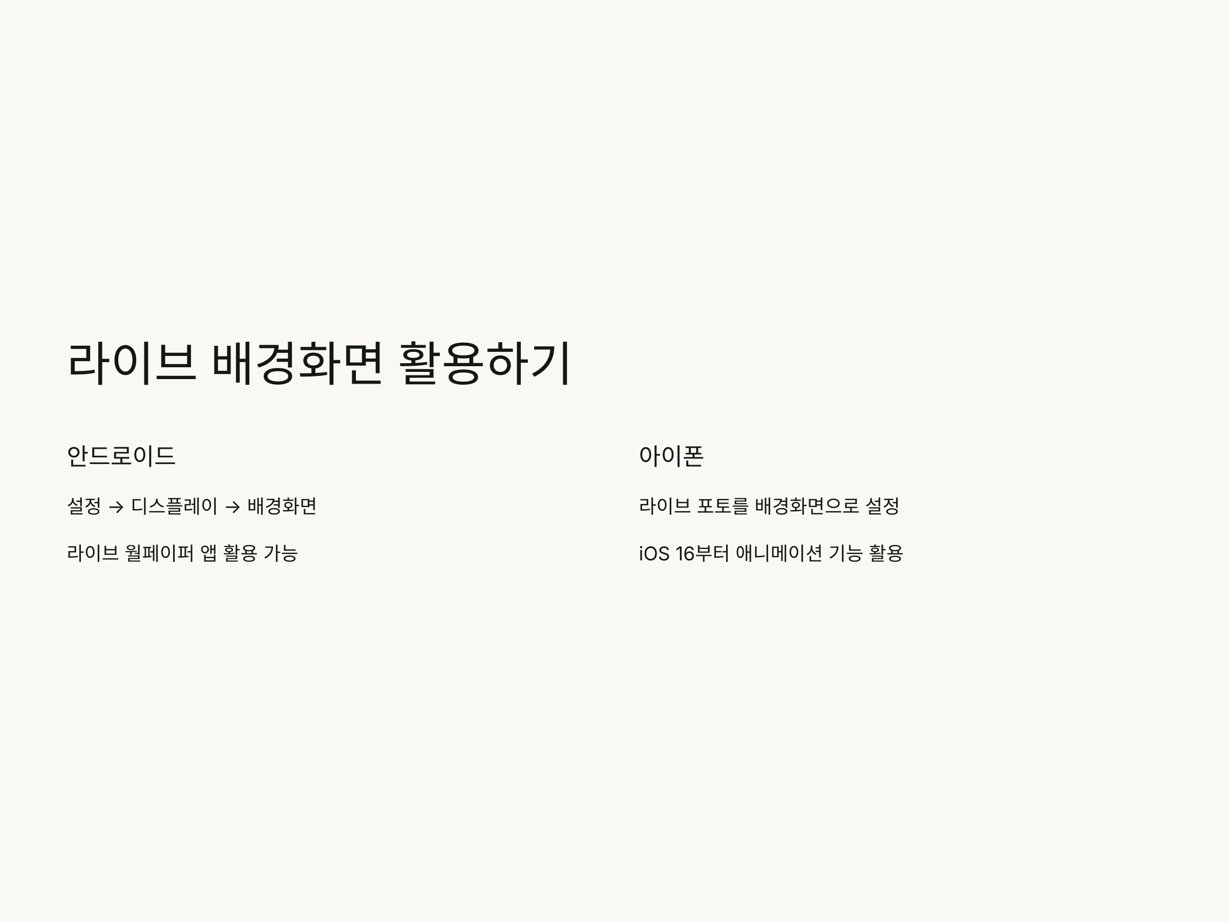 - 설정 방법: 설정 → 디스플레이 → 배경화면 → 라이브 배경화면 선택