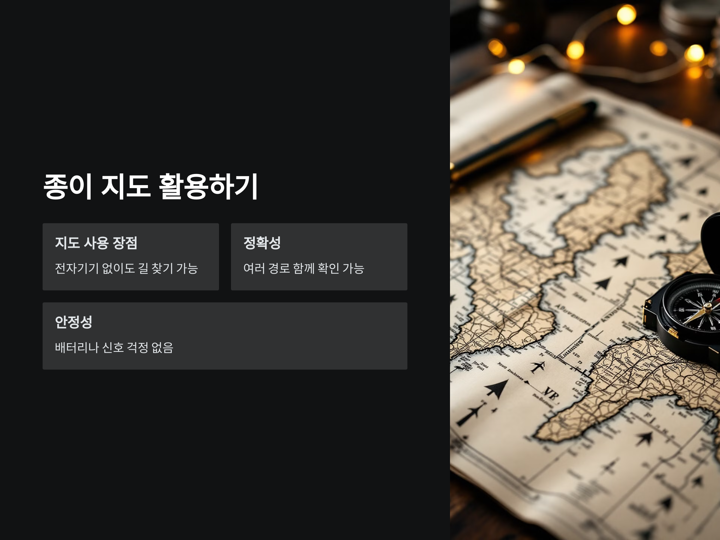 스마트폰 없이 길을 찾는 가장 기본적인 방법은 바로 전통적인 종이 지도를 사용하는 것입니다. 과거에는 길을 찾을 때 종이 지도는 필수적이었습니다. 종이 지도를 사용하면 GPS 신호가 끊기거나 스마트폰 배터리가 부족할 때도 문제가 되지 않습니다. 지도는 장소를 정확히 파악하는 데 유용하며, 여러 가지 기호와 상징을 통해 방향을 쉽게 알 수 있습니다.