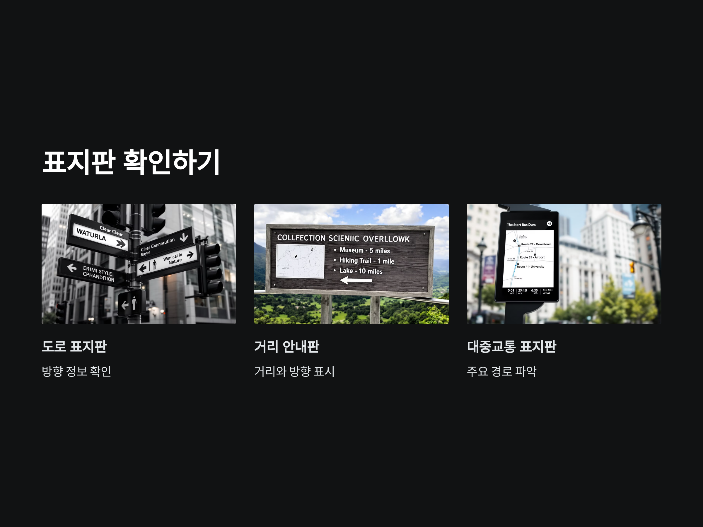 - 길을 걷다 보면 자주 나타나는 표지판들이 있으며, 이를 통해 자신이 어디에 있는지 파악할 수 있습니다.