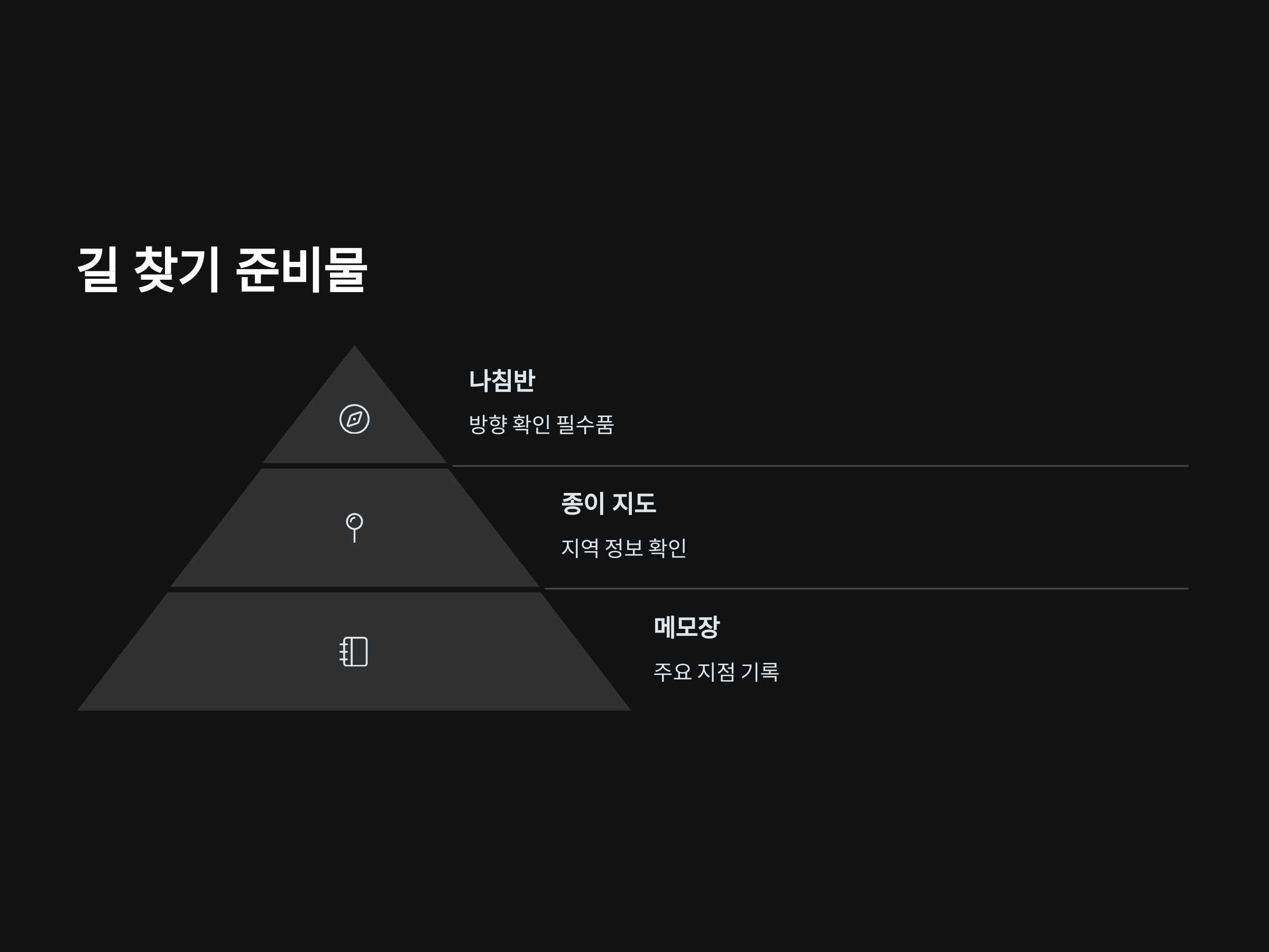 - 밤에는 불빛을 따라가거나, 별을 기준으로 방향을 잡을 수 있습니다.